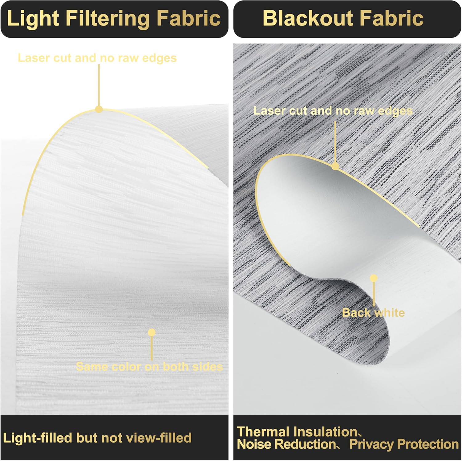 - MULTI-PURPOSE SHADE:Dual roller shades consisting of blackout and light filtering shades, blackout roller shade can 100% blackout,thermal insulation and UV Protection,so that you can experience quiet and comfort of the night during daytime;Light filtering roller shade allow light to filter into your room,and no glare,soft diffused light allow for perfect balance of light and darkness,and also enhances overall aesthetics of your home,allowing for a romantic and comfortable living environment.