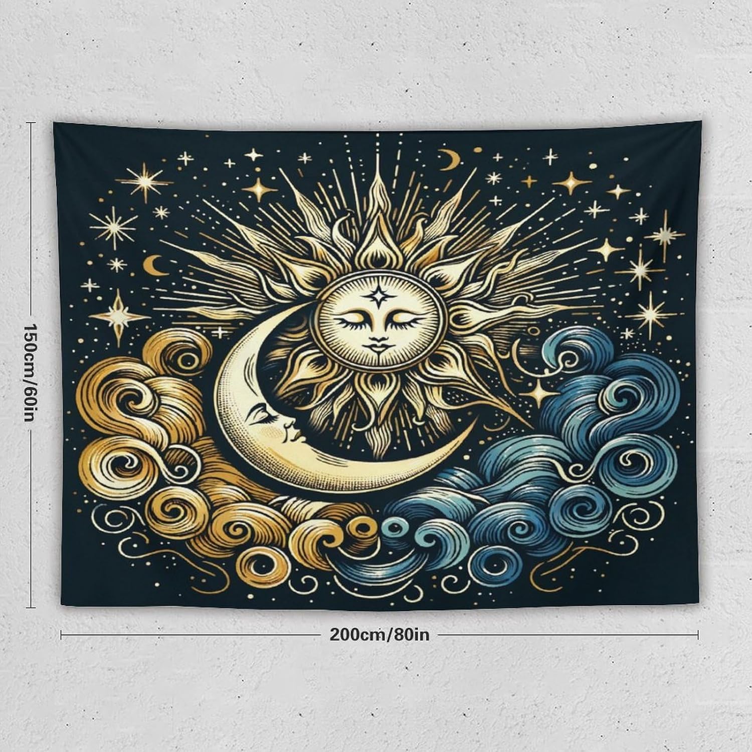 HZOHNAGO Sun Moon Tapestry Boho Golden Stars Pattern Printed Wall Tapestry Wall Hanging for Bedroom Living Room Dorm 80" W x 60" H