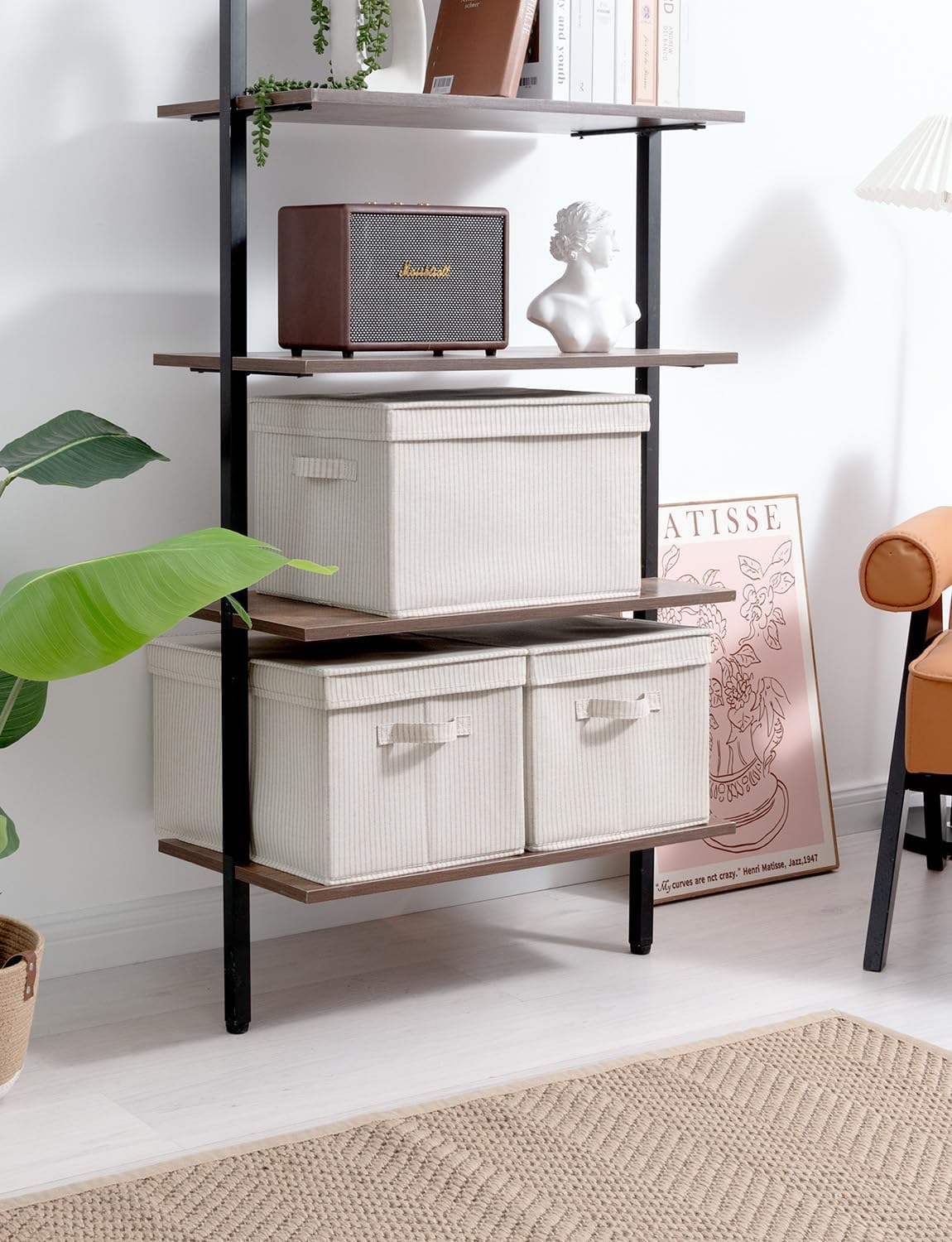 StorageWorks Storage Bins with Lids, Decorative Storage Boxes with Lid and Handles, Foldable Storage Baskets for Closet, Shelves, Stackable, Khaki Stripe, Jumbo, 3-Pack