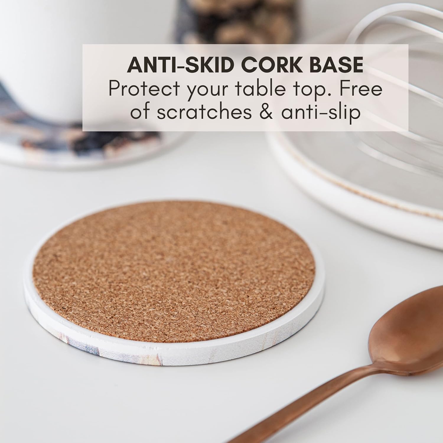 - Thoughtfully Designed: Our cool coasters for drinks come with anti-slip cork backing, ideal as water absorbing coasters for drinks. These stone coasters is perfect for farmhouse coffee table decor and best alternatives to glass or silicone coaster as they do not stick to bottom of the cups/mugs/glasses.