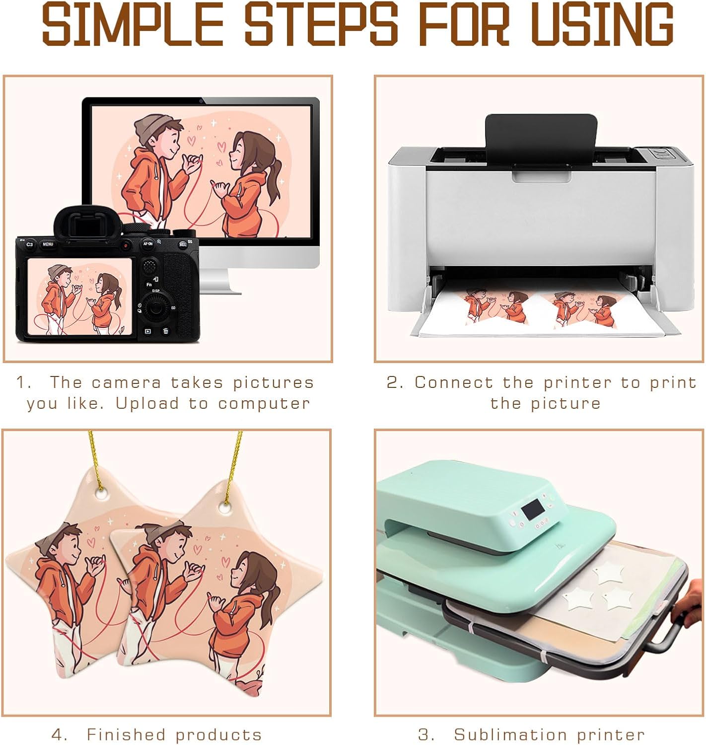 - Sublimation items - Sublimation ceramic ornaments are made of high quality sublimation coating on both sides, the printed colors are bright and not fuzzy, and the image is long lasting.