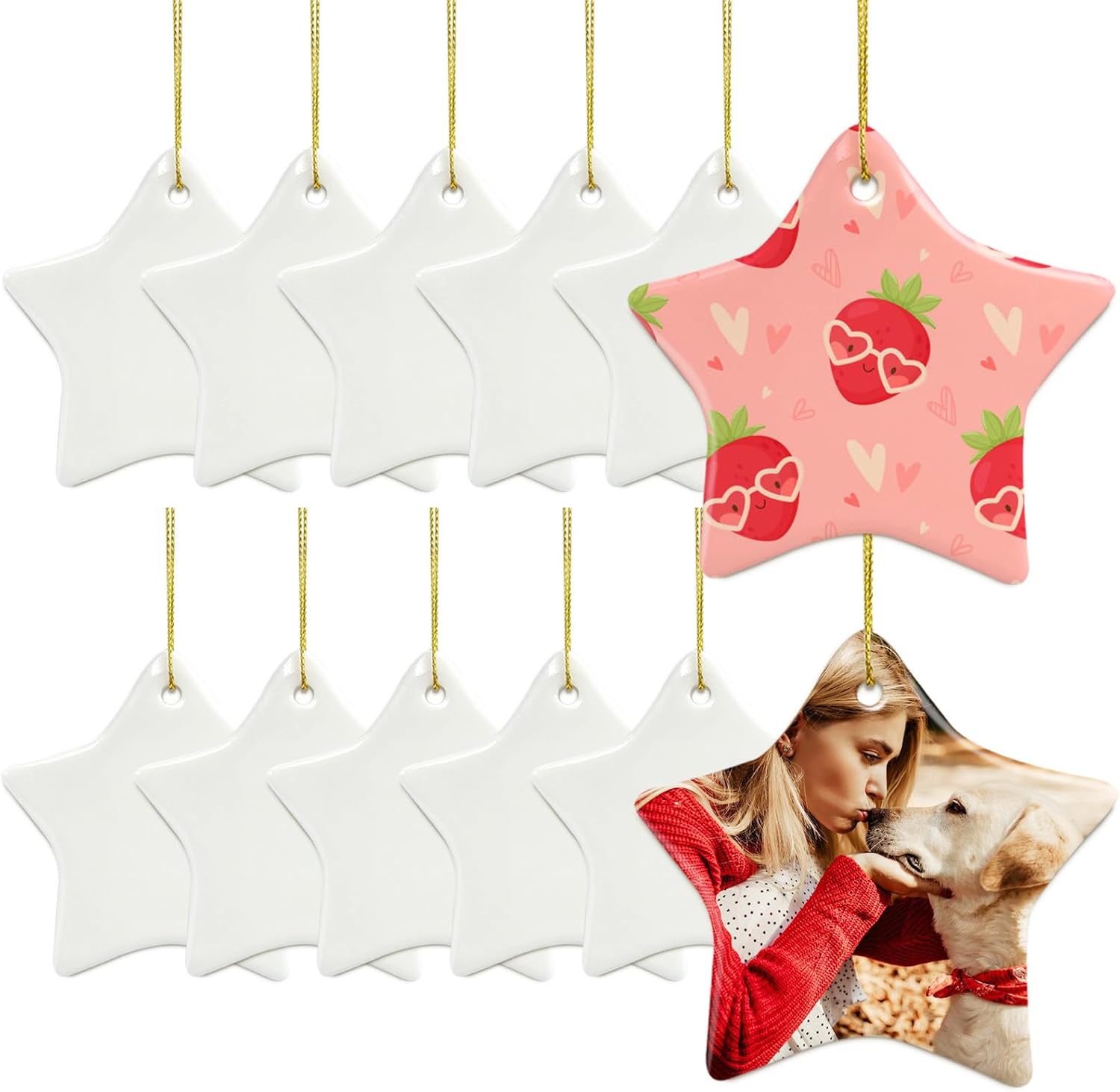 - Personalized Christmas Ornaments 2025:Our sublimation blank ornaments kit includes 12 pieces of sublimation ornaments and 12 gold strings.There are enough quantity to meet your different use and replacement needs.You can enjoy the fun of crafting with your friends and family