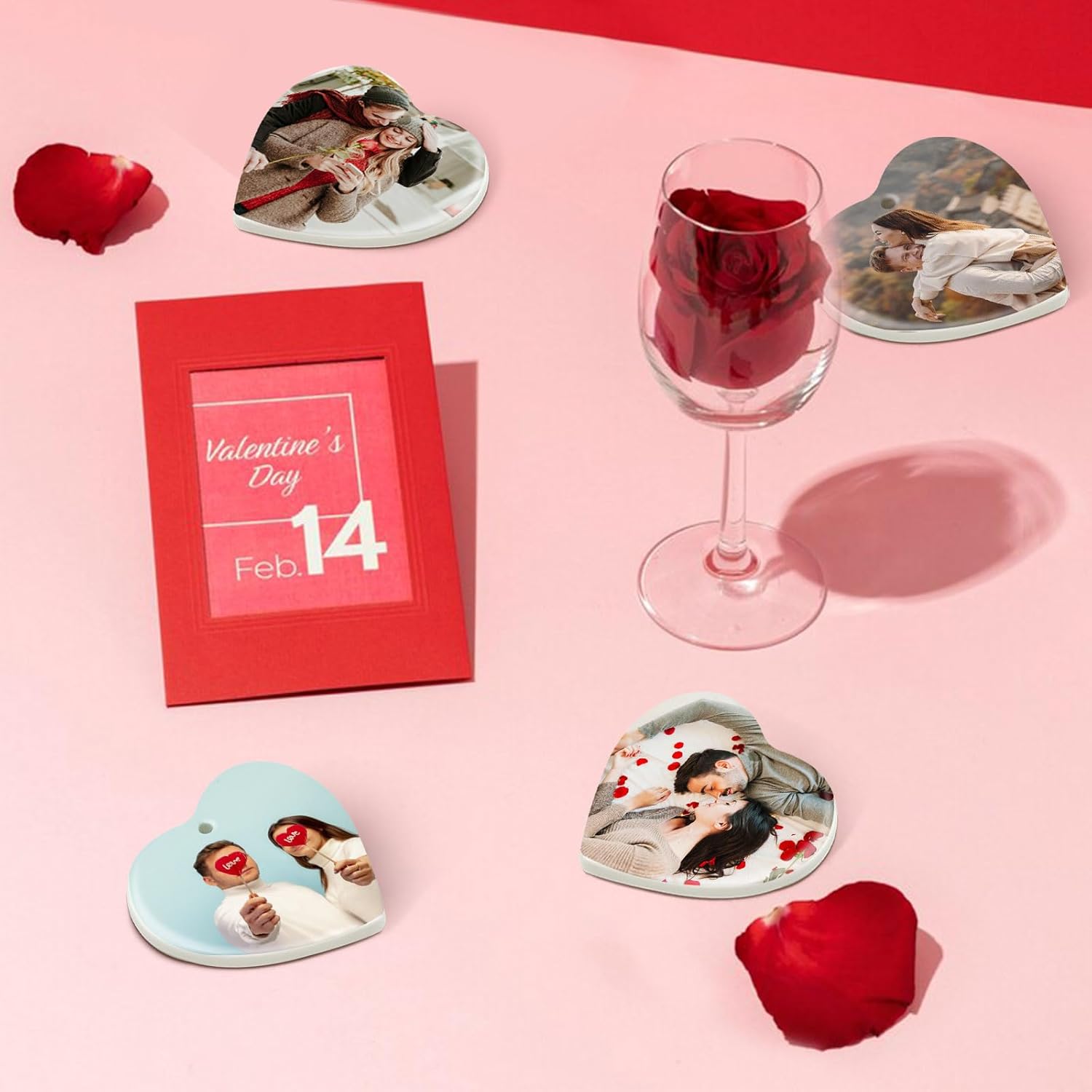 Sublimation Blank Ornaments Sublimation Ceramic Ornament Blanks Bulk Christmas Ornament for Heat Press Printing White Porcelain Ornament Personalized Decoration Supplies for Christmas(12, Heart)