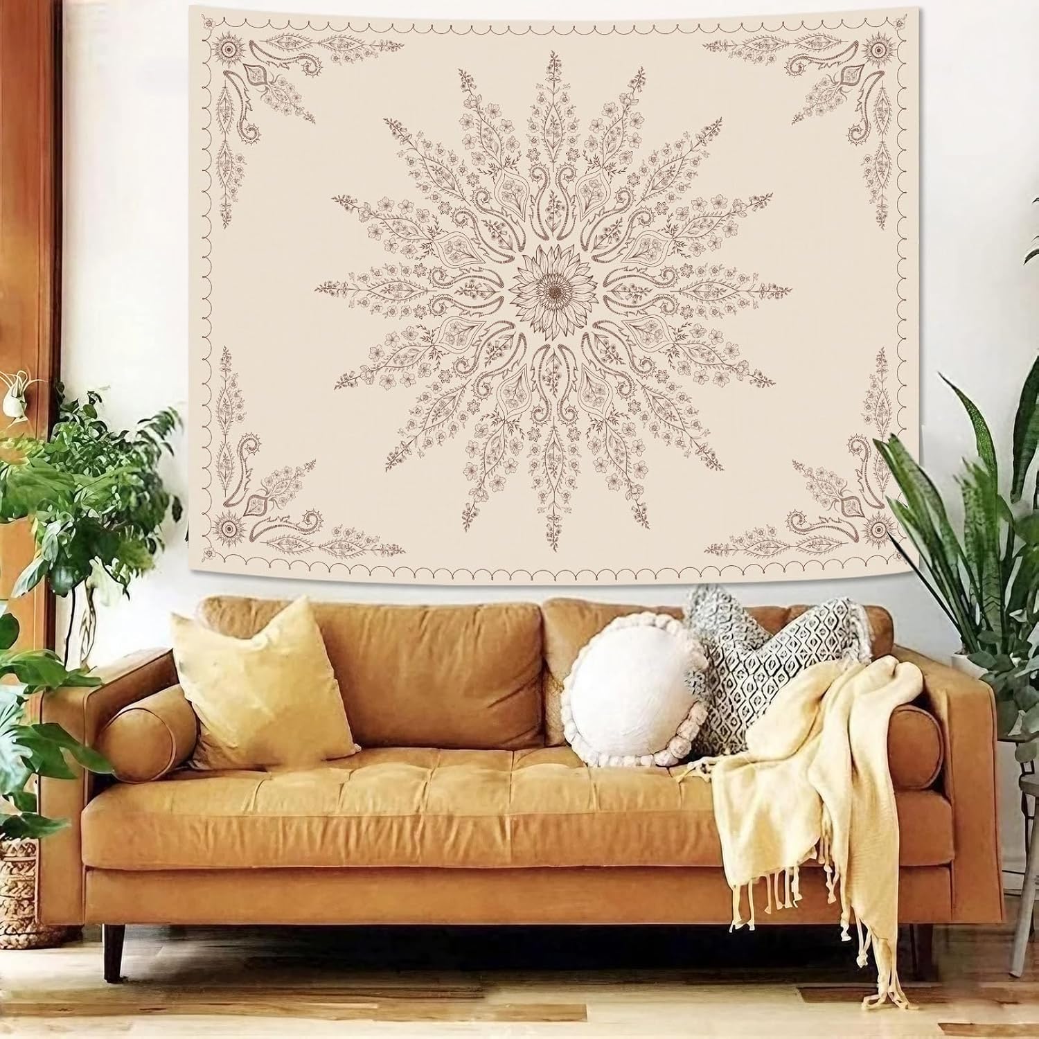 Fowocu Boho Floral Mandala Tapestry for Bedroom Aesthetic Bohemian Flower Wall Tapestry Beige Hippie Indian Small Tapestries Wall Hanging for Living Room Dorm Decor 40 x 30 Inch