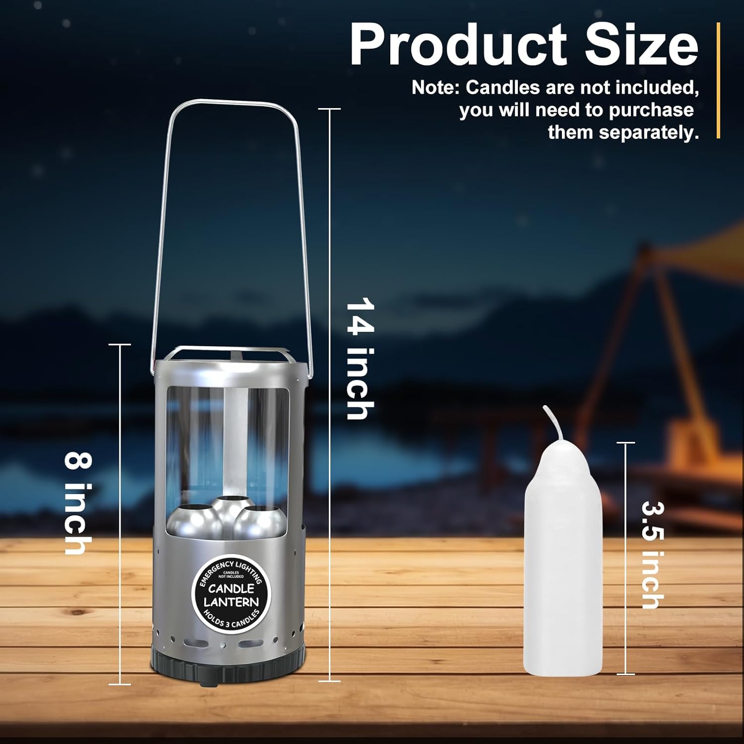 - Camping Essential: Candle lantern is designed for outdoor camping/emergency lighting. The candles have a long shelf life and are easy to store. No need to worry about batteries or bulbs or carrying liquid fuel. (Note: Set without candles.)
