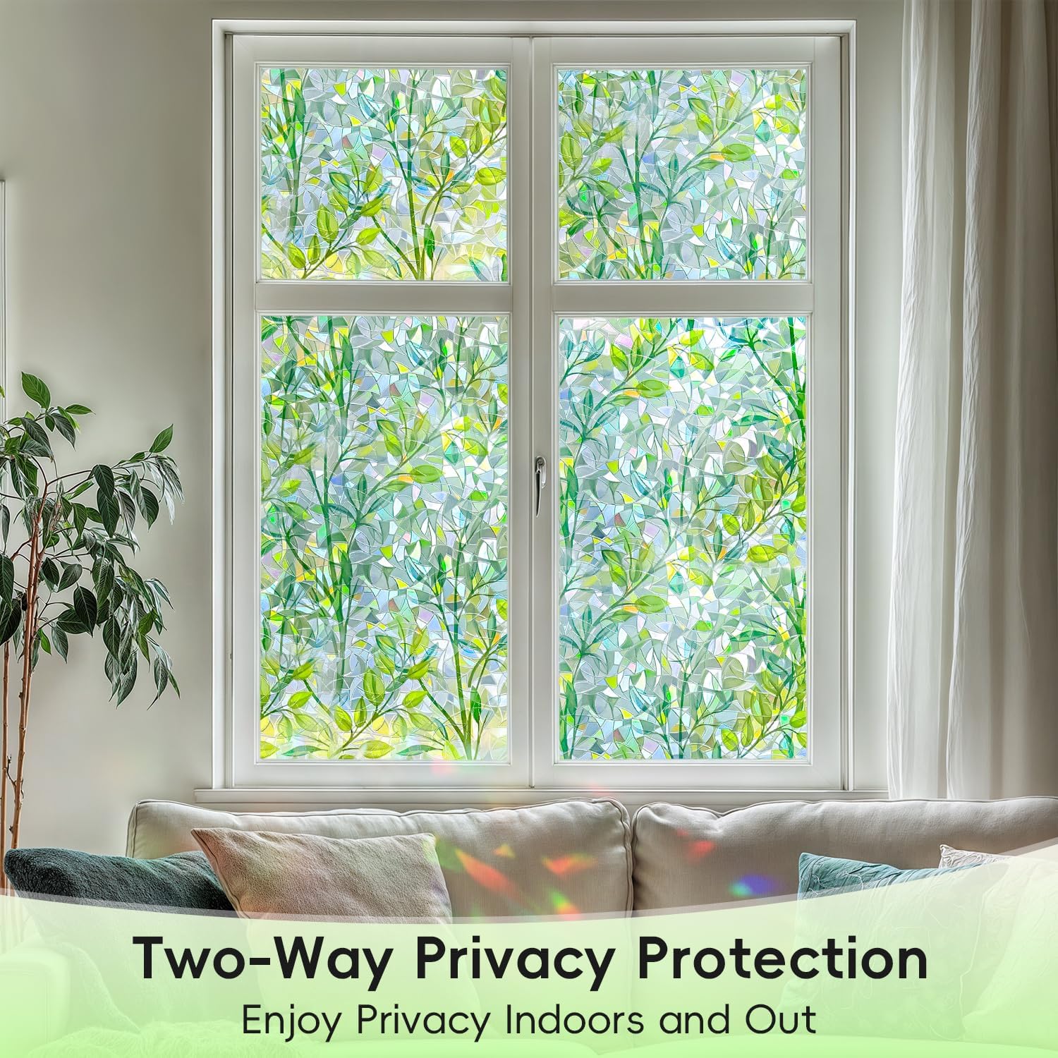 DUOFIRE Window Privacy Film Decorative Stained Glass Window Film Rainbow Foliage Windows Cling Anti UV Non-Adhesive Static Cling Reusable Colorful Windows Decal for Home 35.4×78.7 inch