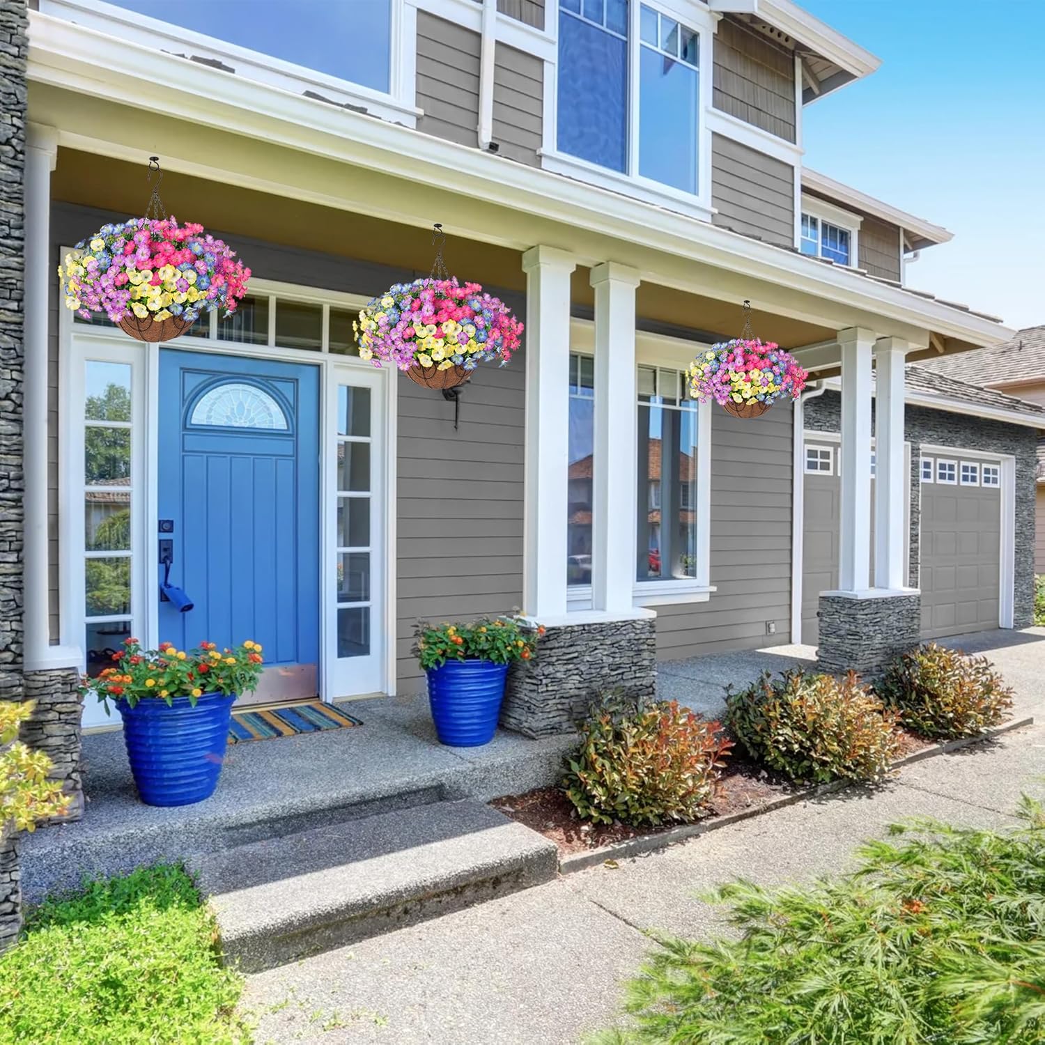 - π’ All-Occasion Decoration: These artificial outdoor hanging flowers basket are perfect for garden, porch, patio, balcony, yard, home, front door, and outside decoration. These artificial hanging flowers with a basket provide the beauty of real flowers without the need for maintenance.