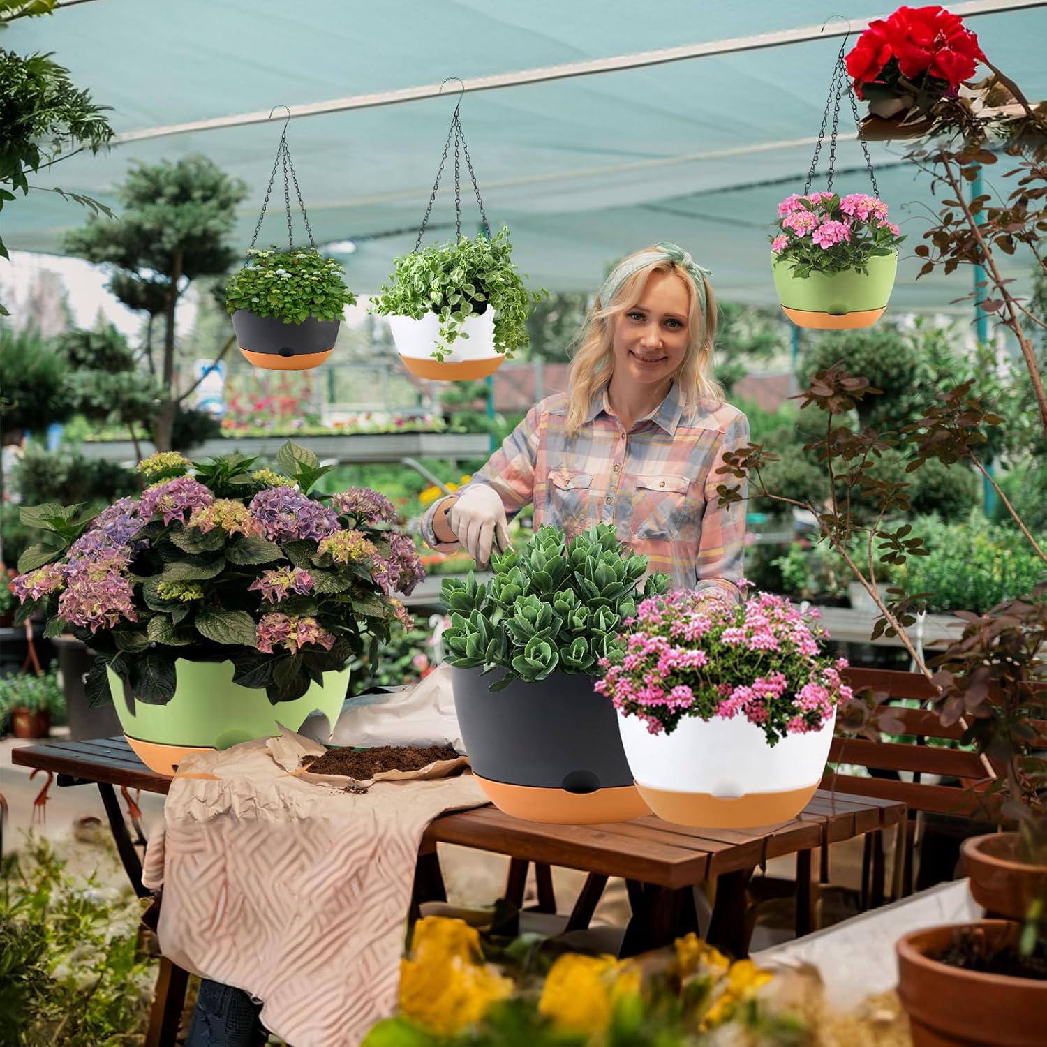 10 Inch Self Watering Hanging Pots, 3 Pack Hanging Planters