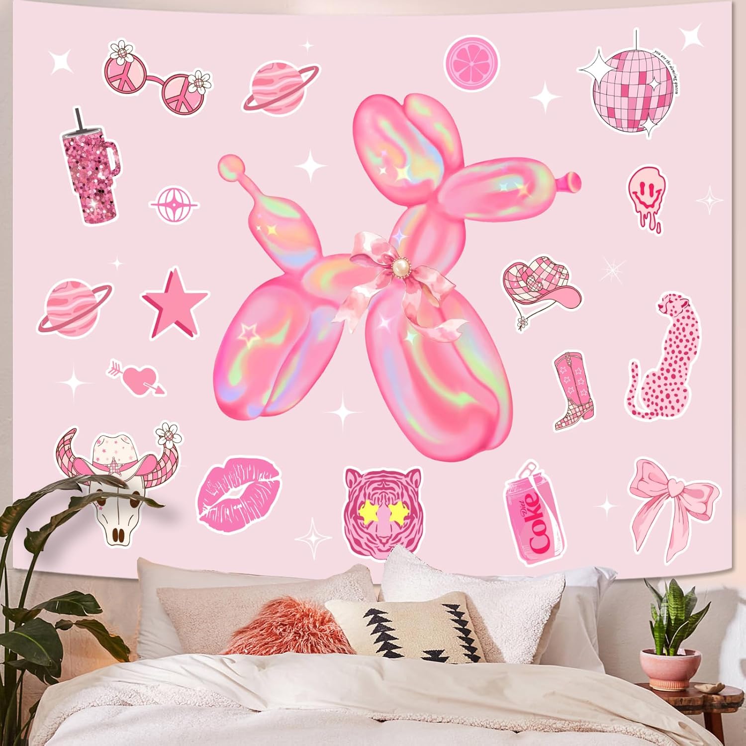 Lunerfex Y2K Tapestry Pink Dog Wall Tapestry, Cute Tapestries for Bedroom Funny Tapestries Wall Hanging for Bedroom Living Room Decor Pink-6 44"x60"