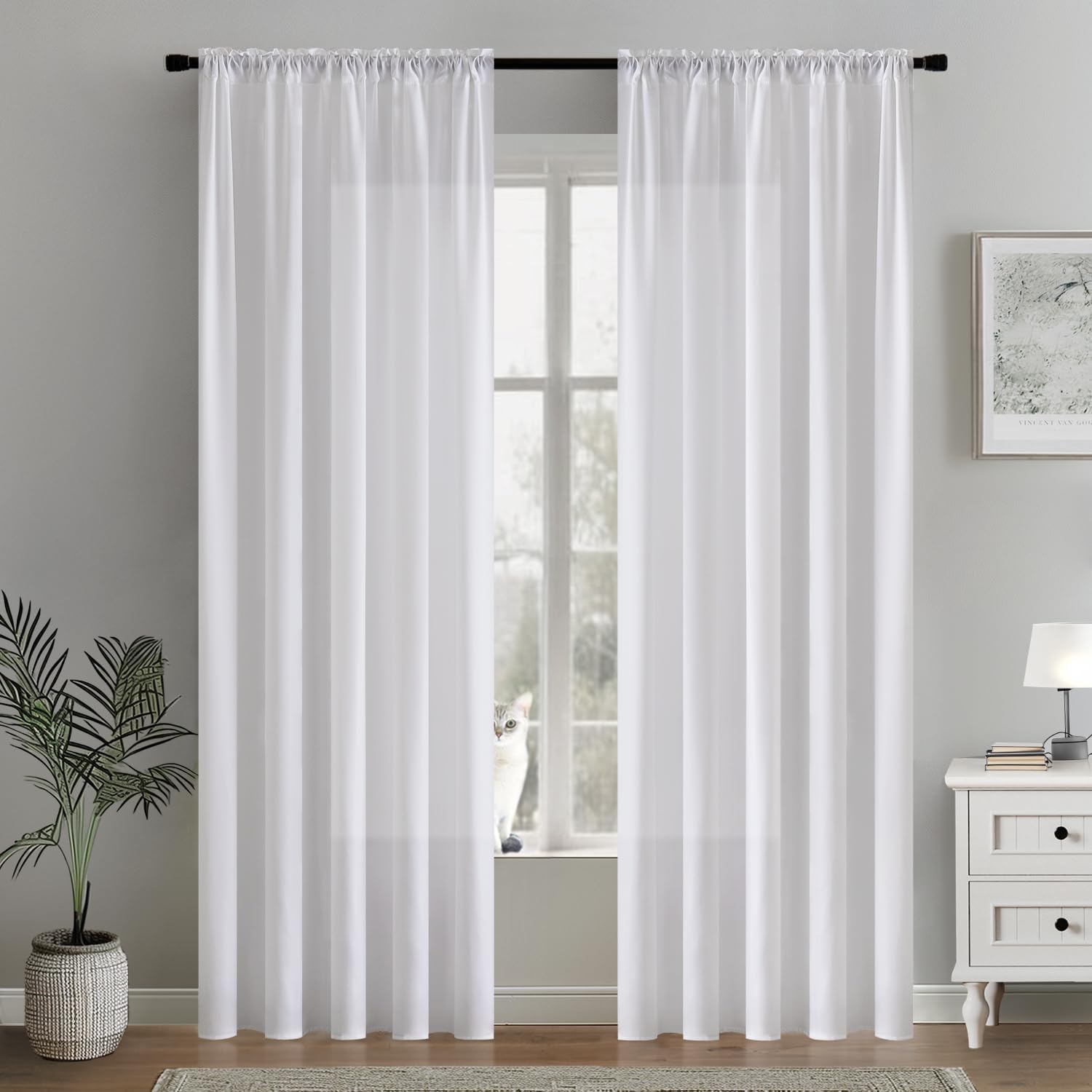 MIULEE White Privacy Sheer Curtains That Let Light in 72 Inches Long Non-See-Through Semi Sheer Curtains Light Filtering Window Curtain Drapes for Living Room Bedroom 2 Panels Set 42 X 72