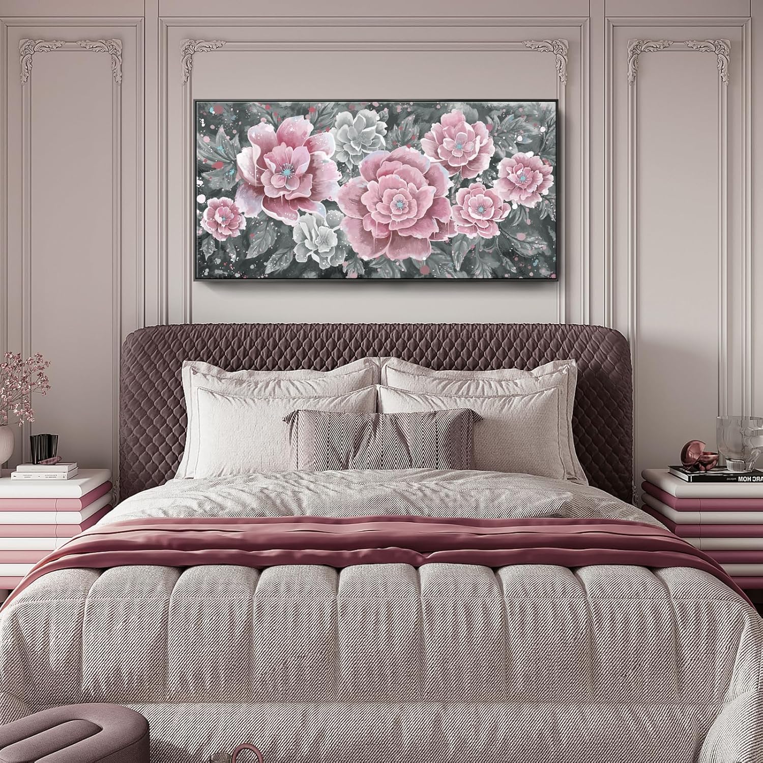 - Black Frame Details: This extra large artwork is presented in a modern floating frame that enhances its elegant look. Measuring 1.26 inches wide, the frame creates the illusion that the canvas is floating, adding depth and dimension to your pink wall art.