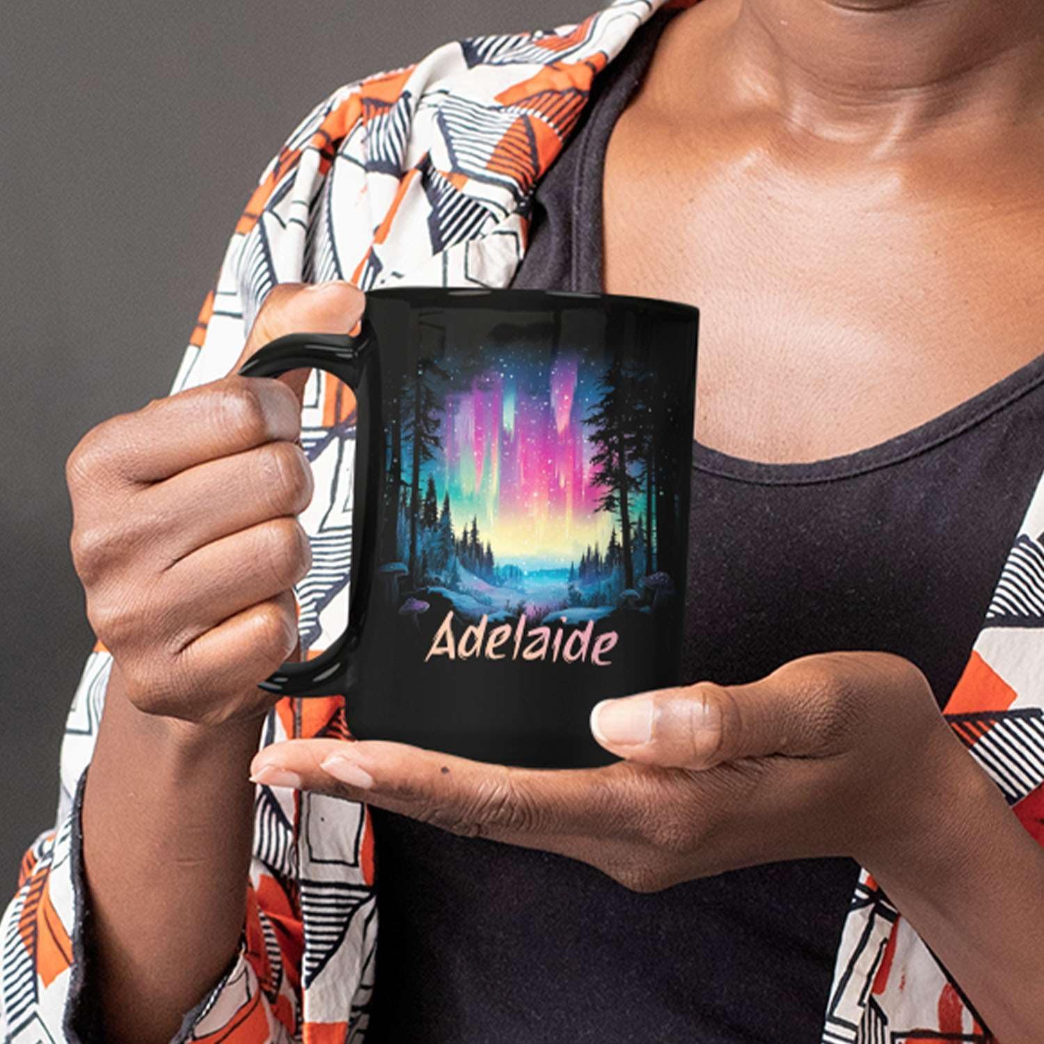 - 💝【UNIQUELY PERSONALIZED】Embrace the beauty of nature with this Personalized Winter Landscape Coffee Mug, featuring an enchanting forest and vibrant northern lights in the sky. This black ceramic mug gift for nature lovers and can be customized with a name to make it extra special. Click "Customize Now" to personalize your gift and create a one-of-a-kind keepsake. Ideal for those who appreciate the serene magic of the outdoors. Available in 11oz and 15oz sizes.