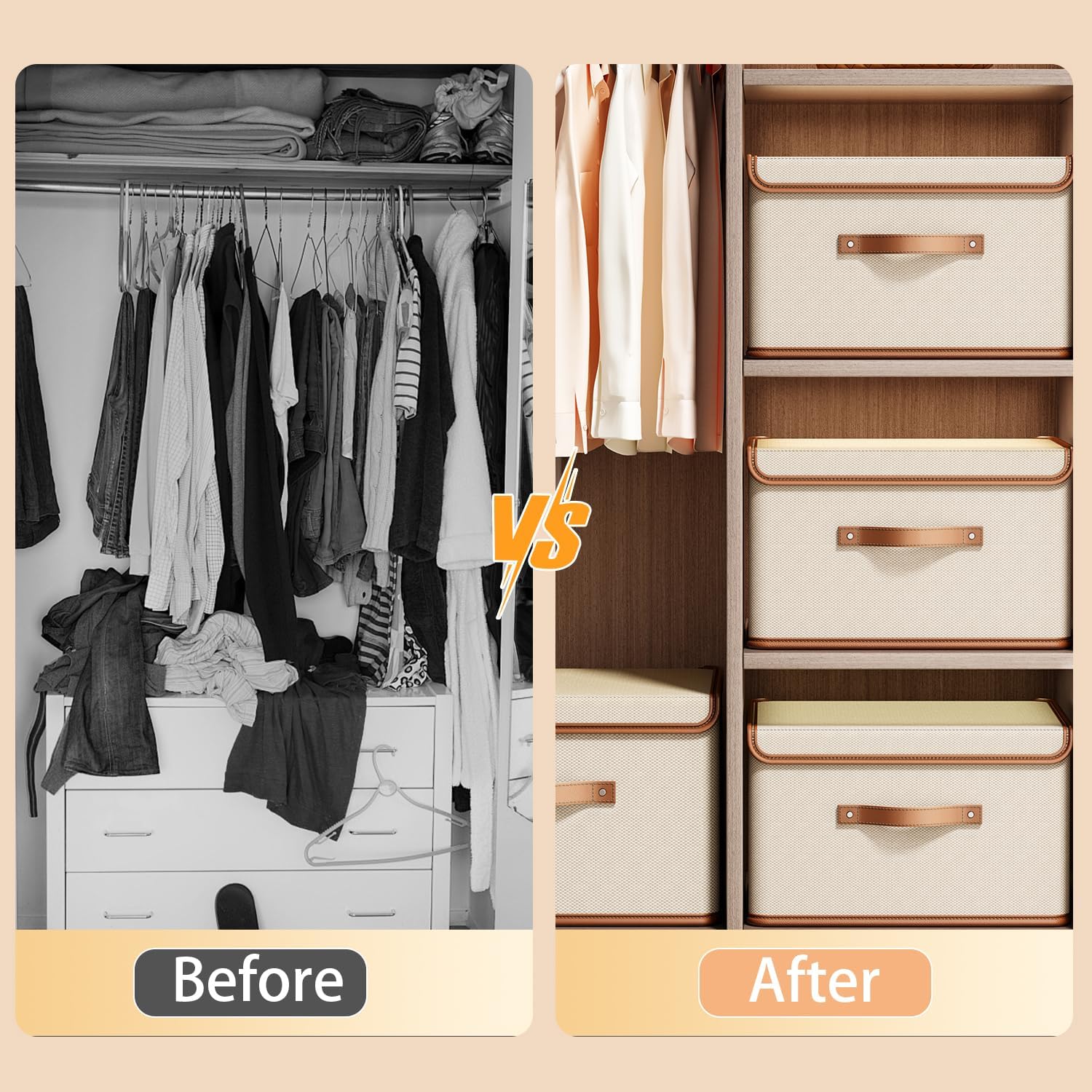 - Decorative and Foldable: The leather trim of the closet organizer not only adds a decorative touch but also seamlessly harmonizes with various home decor styles. Its thoughtful design includes a removable bottom panel, facilitating easy folding. This not only enhances convenience in usage but also ensures efficient space-saving when not in use
