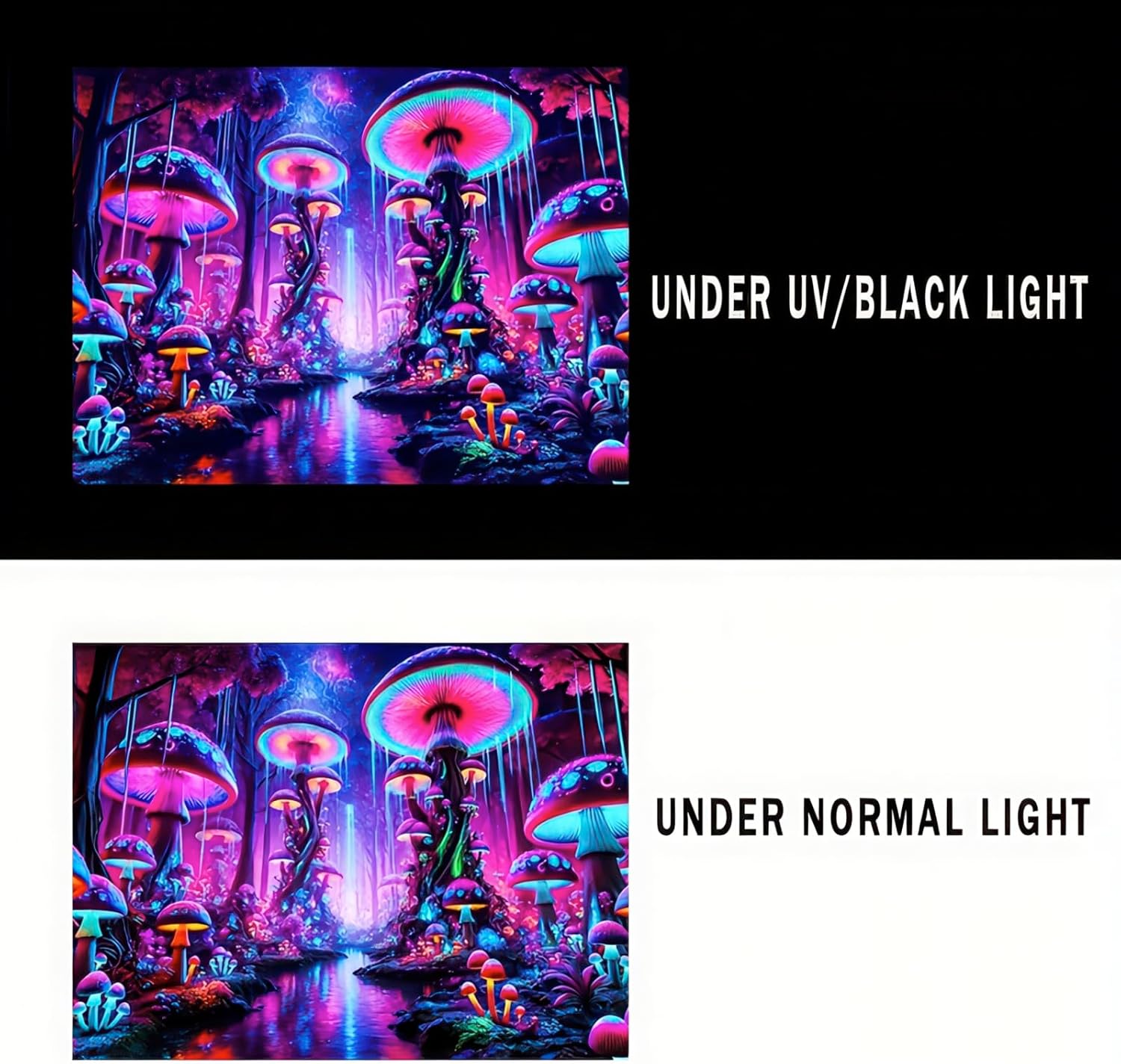 - Blacklight and UV Reactive: Featuring advanced with special materials polyester, this blacklight poster emits brilliant light under blacklight or UV radiation. It creates a unique visual experience that transforms your space into an otherworldly ambiance.