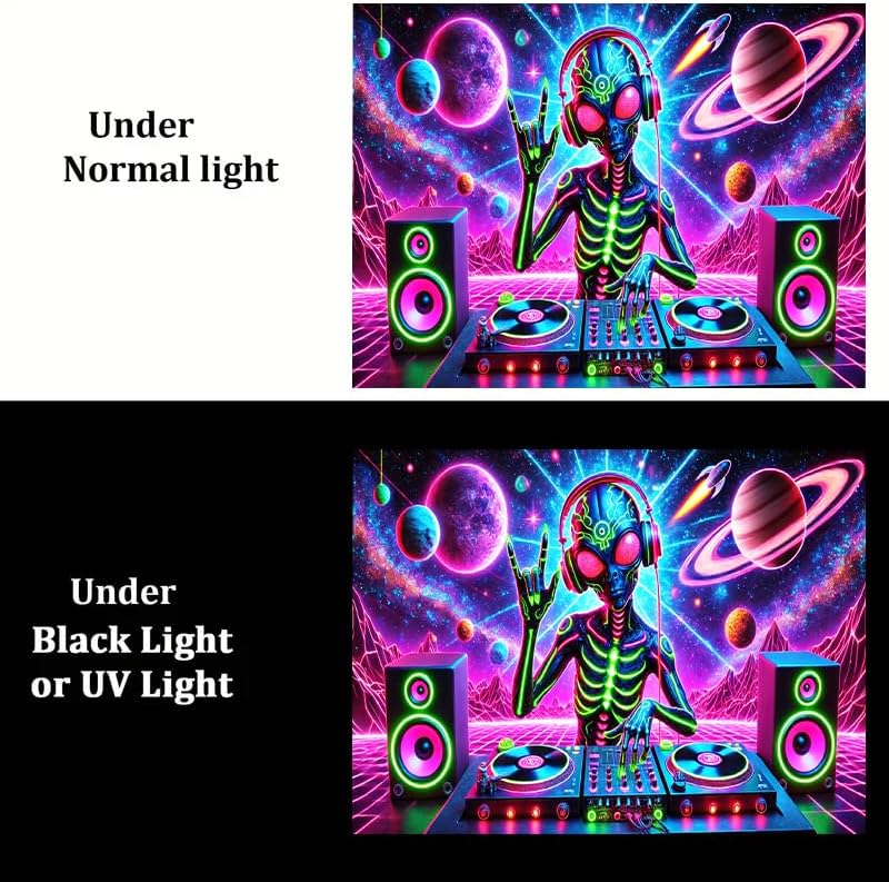 - Fluorescent Glow in the Dark Effect:This aliens tapestry brings your space to life with a stunning glow-in-the-dark feature. The vibrant colors brighten up your room, especially in low-light settings, making it the perfect decorative piece for your living room, bedroom, or party venue.