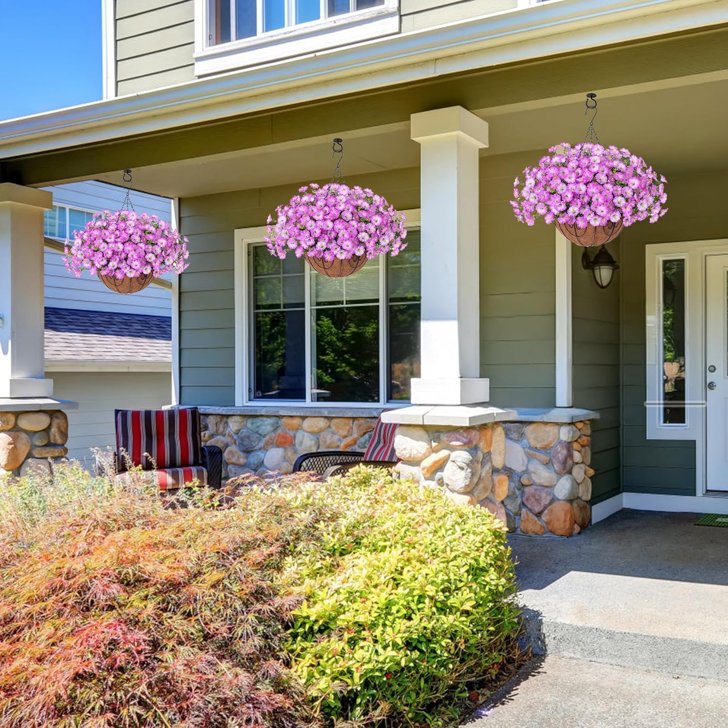 - π’ All-Occasion Decoration: These artificial outdoor hanging flowers basket are perfect for garden, porch, patio, balcony, yard, home, front door, and outside decoration. These artificial hanging flowers with a basket provide the beauty of real flowers without the need for maintenance.
