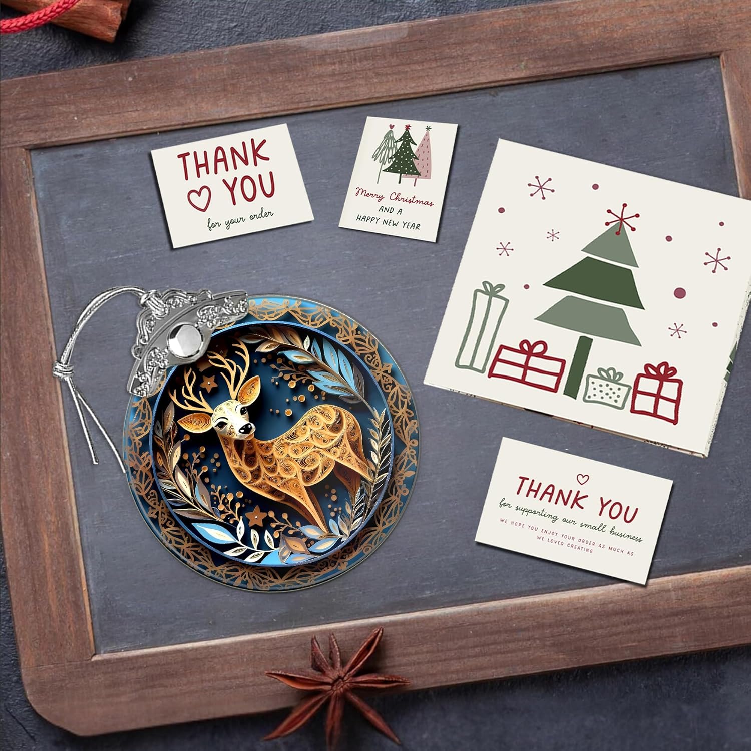 2025 Christmas Ornament, Stained Glass Effections, Christmas Tree 4 Inch Acrylic Ornament Art, White Elephant Gifts Car Interiors Decors, Christmas Decor (Quilling Deer)