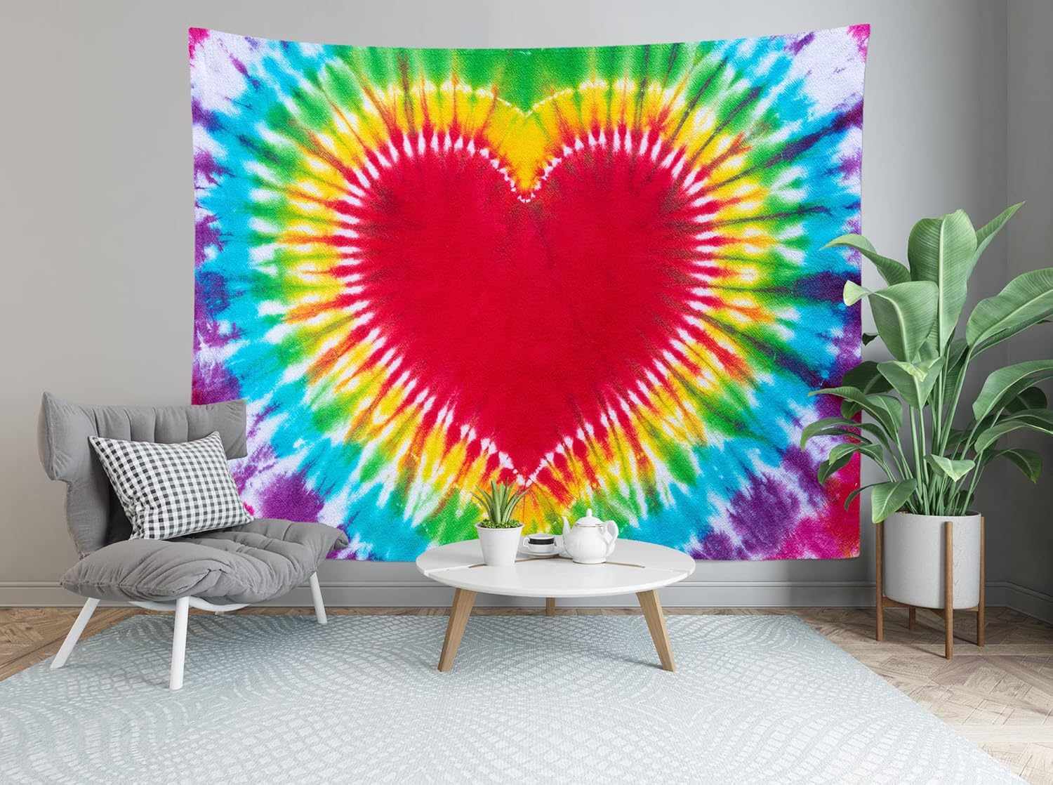 Loccor Colorful Tie Dye Tapestry Rainbow Heart Tie Dye Watercolor Wall Hanging Abstract Hippie Wall Decor LBGT Party Supplies Home Bedroom Living Room Decor W118 x H78 inches