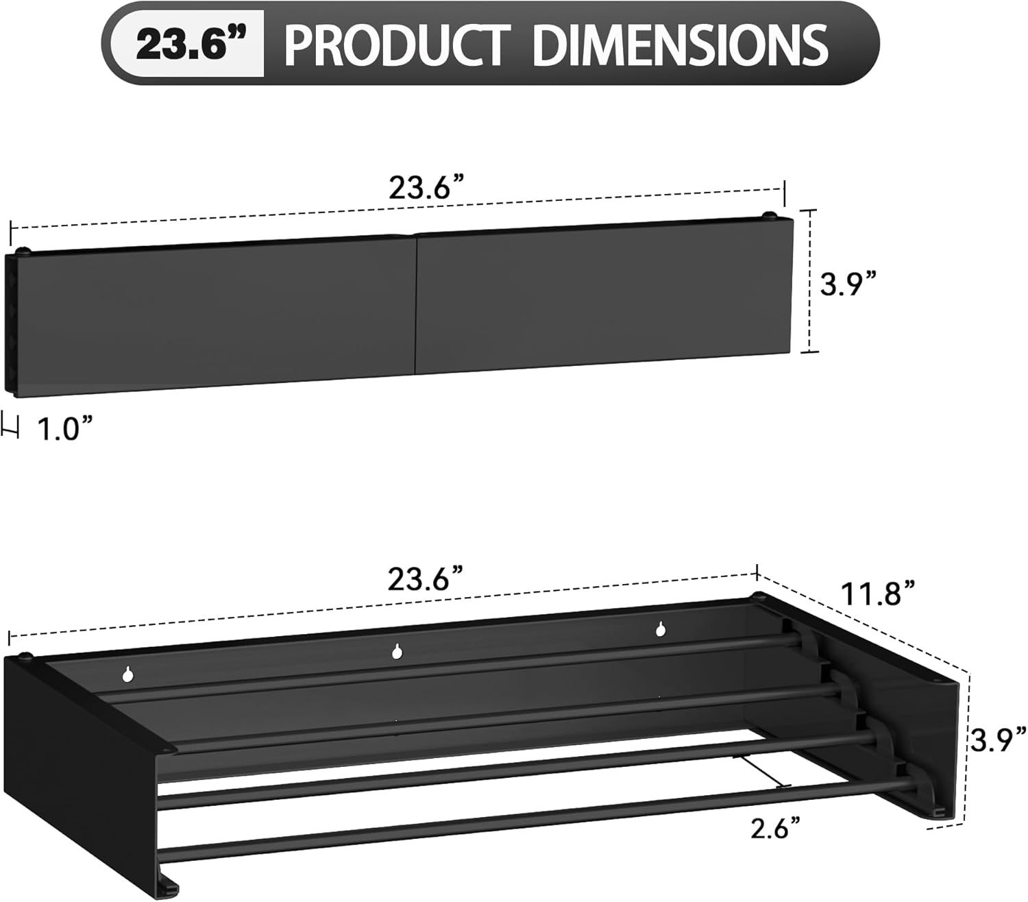 FOCHIER F Laundry Drying Rack Wall Mounted Clothes Drying Rack Collapsible with 5 Aluminum Rods and Drilling Template Long Screwdriver Bit 60 lbs Capacity (Black, 23.6“)