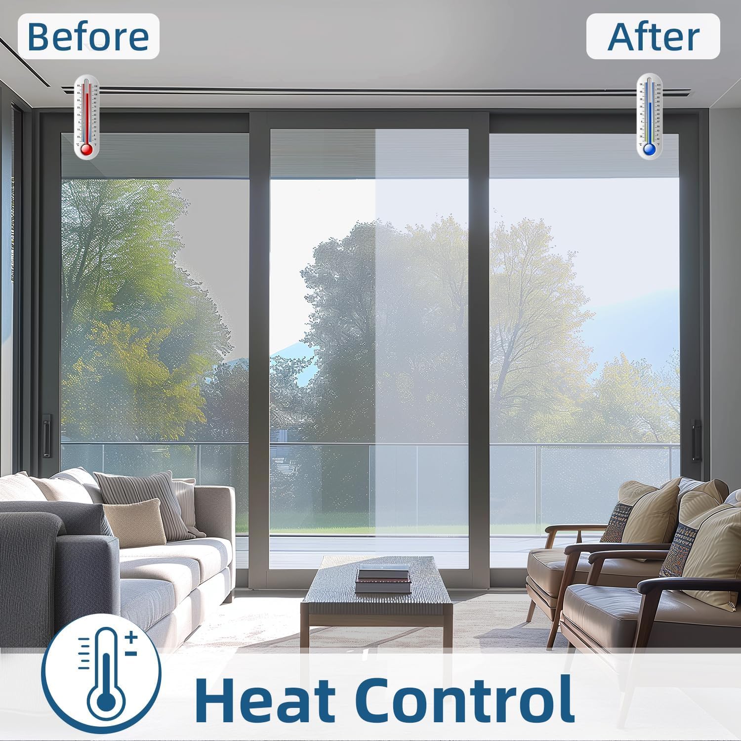 - HEAT BLOCKING & ENERGY SAVING: Our window tint for home has a mirror effect and can block 77% of infrared rays, which can reflect part of the heat and reduce the heat passing through the window, which has the effect of heat control, keeping you warm in the winter and insulated in the summer, saving you some energy bills.