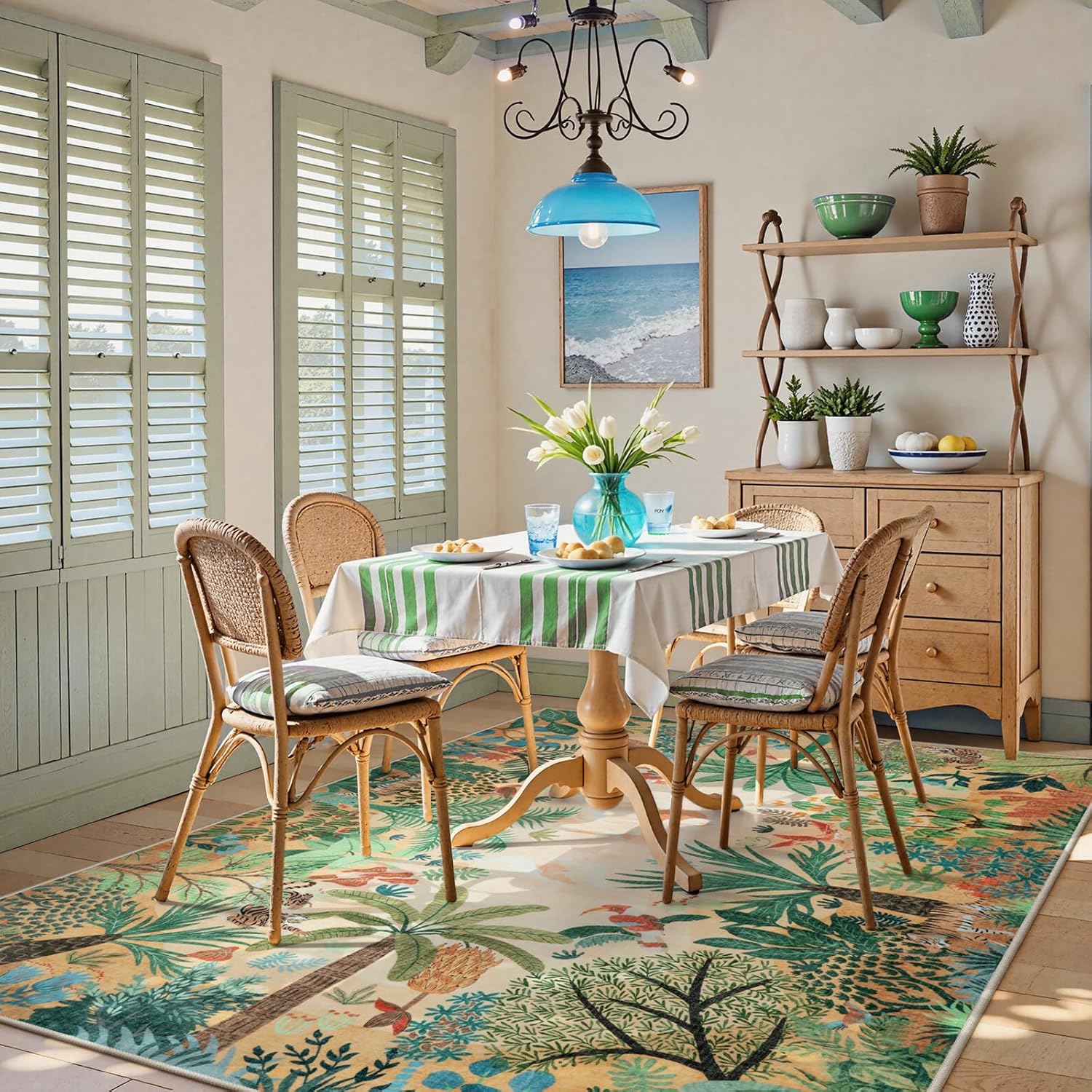 - 【Safe Anti-Slip Backing】: Designed with a sturdy anti-slip backing, this living room rugs 5x7 stays firmly in place on any surface. Its secure grip ensures safety, preventing accidental slips, even in busy areas of your home.