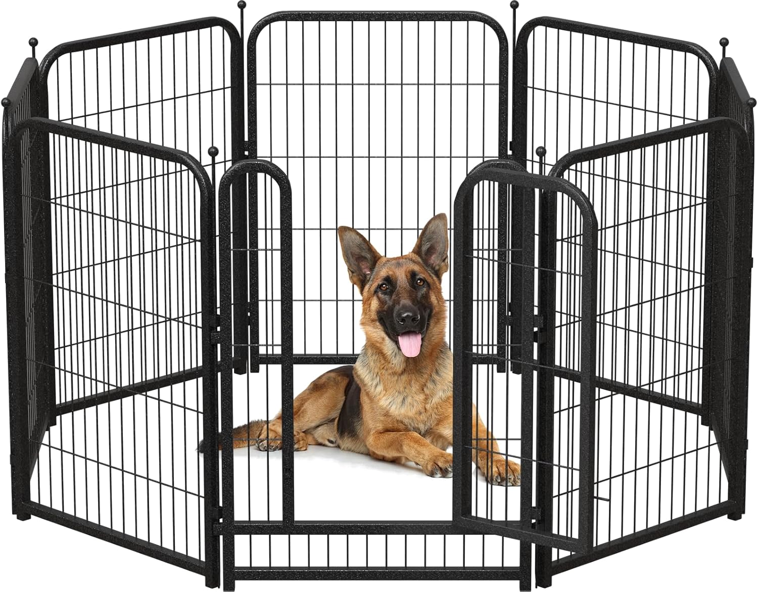 Metal Dog Playpen, 40 Inch Height 8 Panels, Ideal Dog Fence for Large/Medium/Small Dogs Indoor & Outdoor Bliss, Perfect Dog Pen for Camping, Yard, and RV | Black-Silver