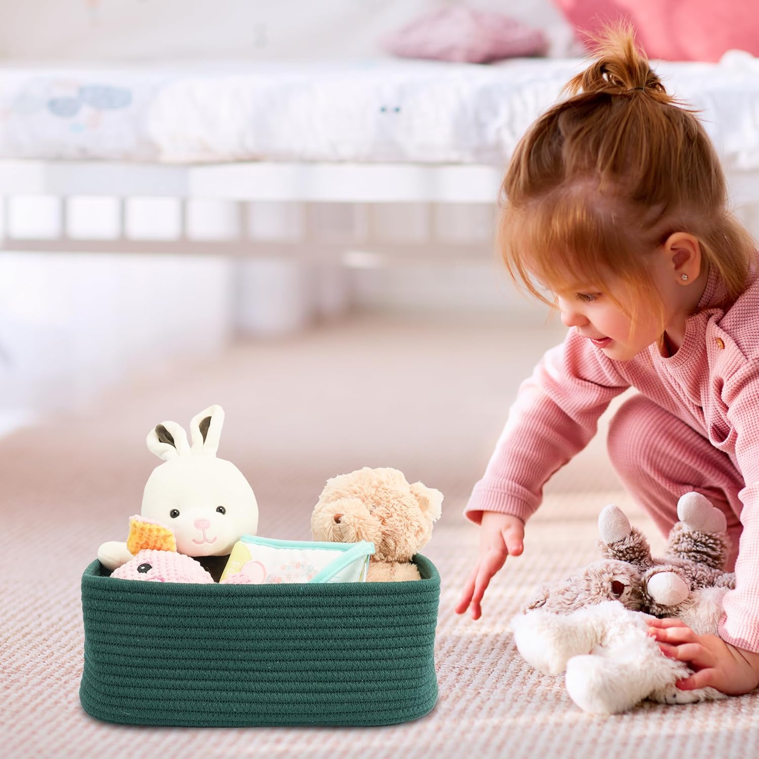 Small Woven Storage Baskets 13“X9”X5“ Decorative Rope Bins for Organizing Shelves, Closets, and Toys, Empty Gift Baskets, Cute Organizer Basket for Home and Office (dark green, Large)