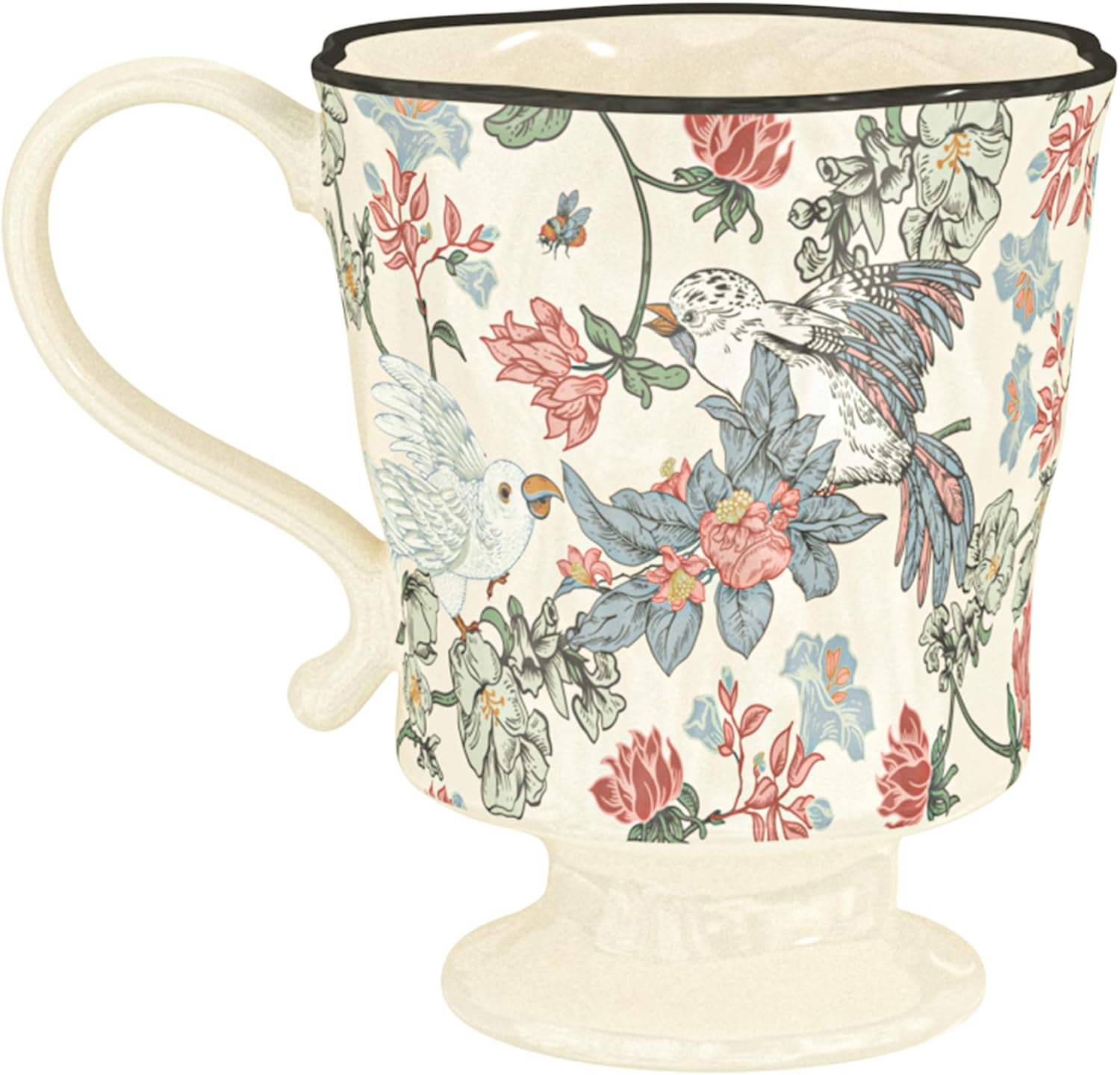 360ml -12.17oz Painted Floral & Bird Ceramic Mug - Cute Coffee Cup for Latte, Espresso - Gift for Women, Dishwasher Safe