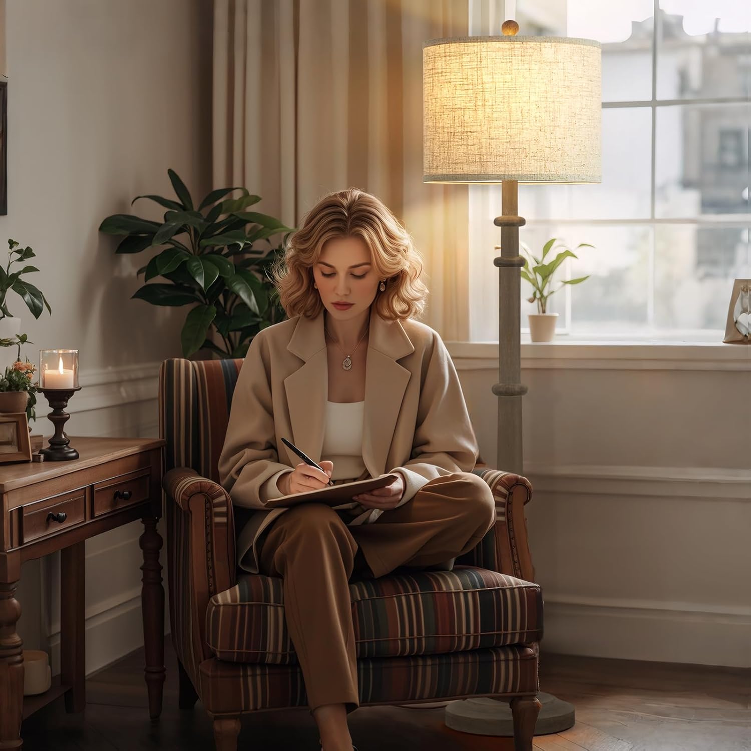 Floor Lamps for Living Room - 60" Resin Farmhouse Floor Lamp with 3 Color Temperatures - Vintage Standing Lamp Reading Light with Linen Shade Retro Tall Lamp for Bedroom Office, Grey