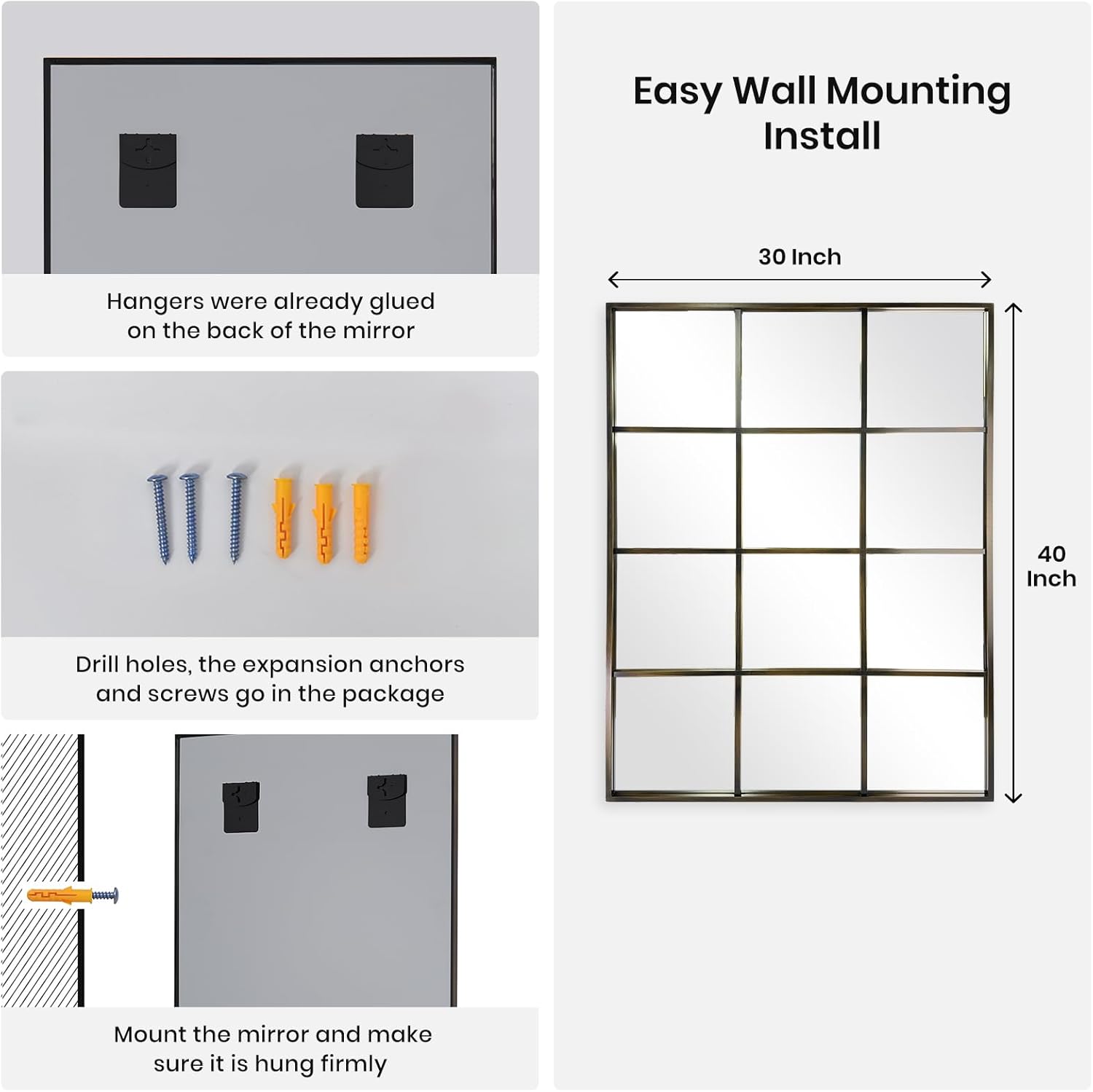 - Gifts For Everyone: This windowpane full length mirror is suitable for everyone you care about. A best gift idea for your mom, wife, partner, deaughter, sister and friend. Package including a full body mirror, installation accessiories and instruction