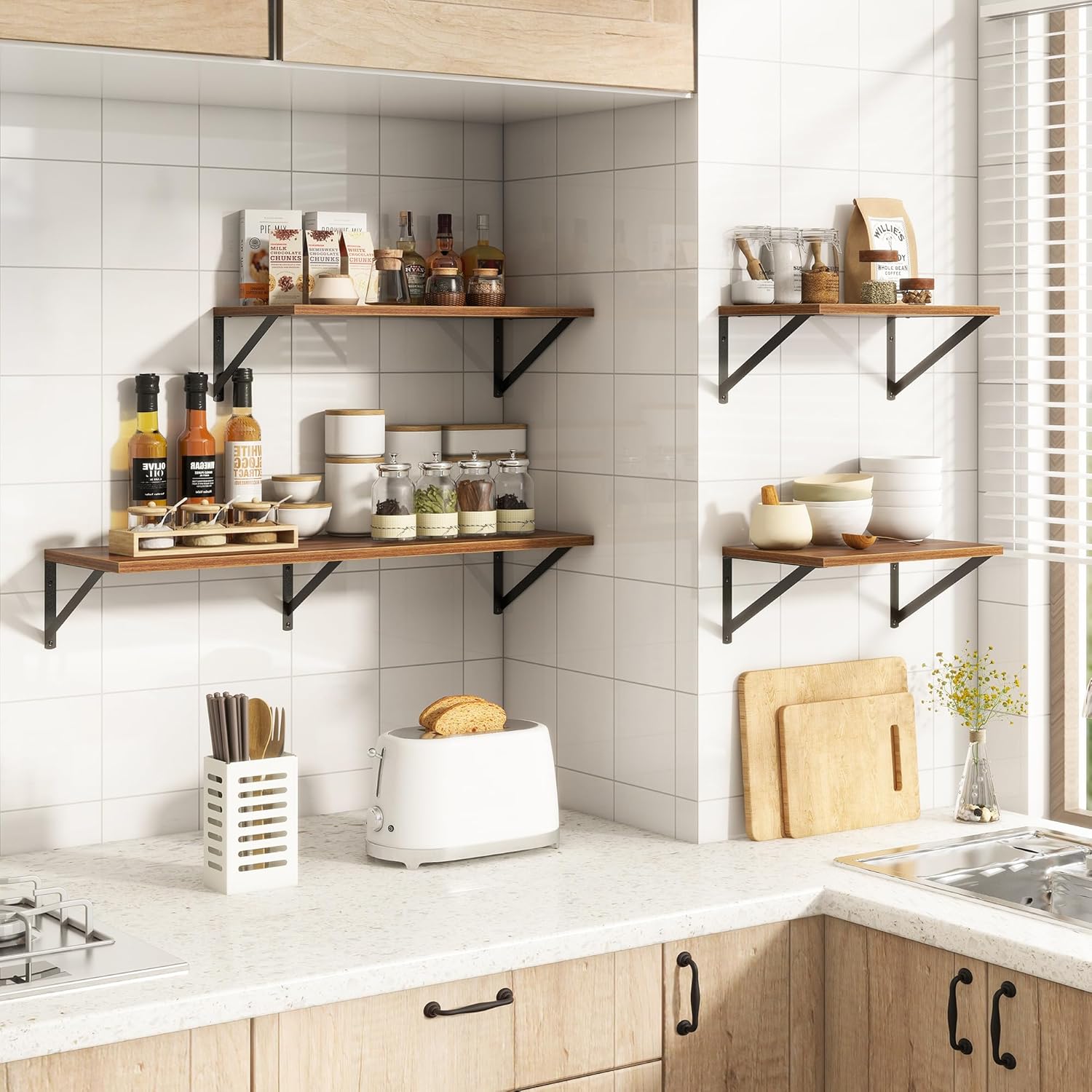 - ăEasy to AssembleăThese shelves come with all mounting hardware and instructions. You can install them in less than 15 minutes. If you have any questions about our products, please feel free to contact us and we will try our best to solve them for you!