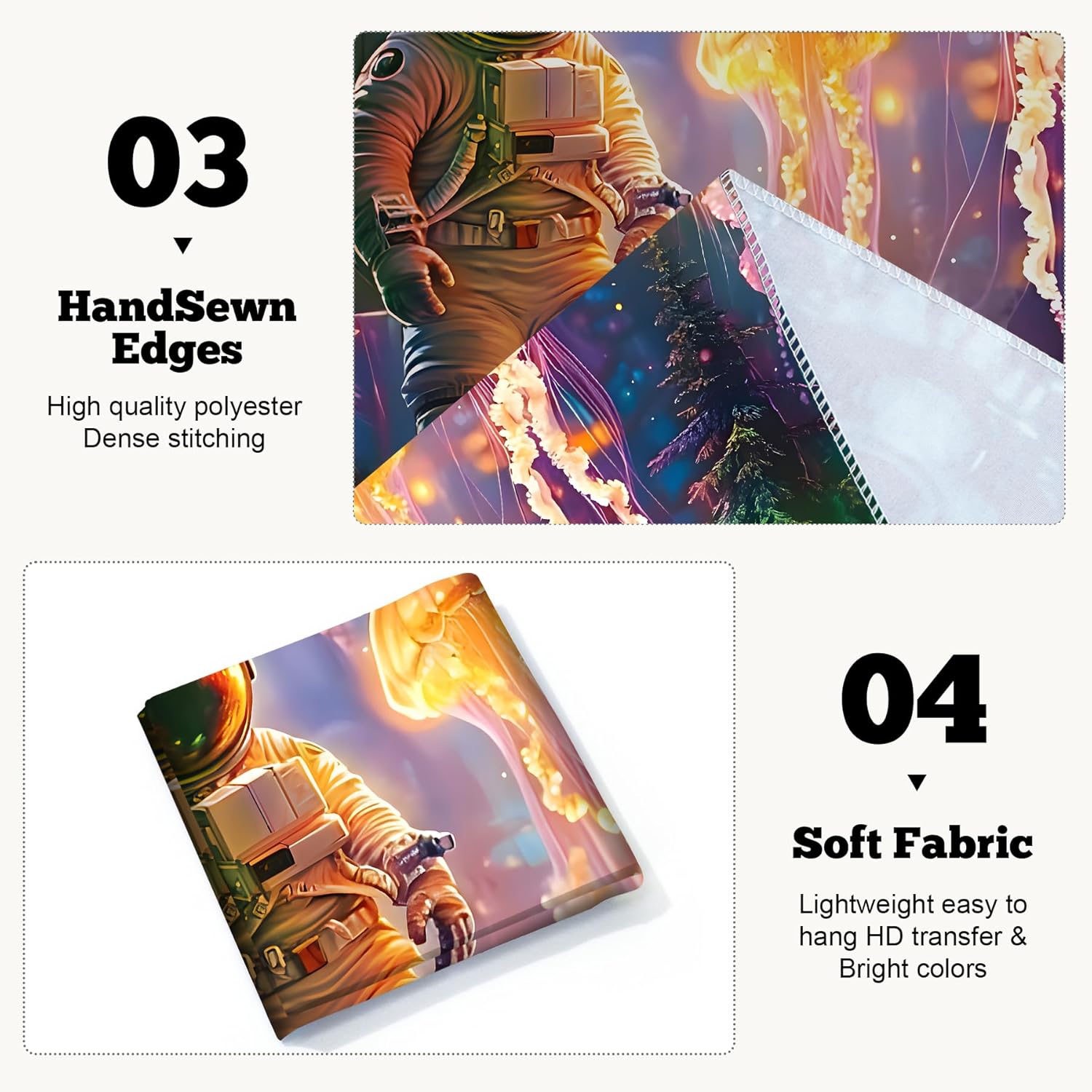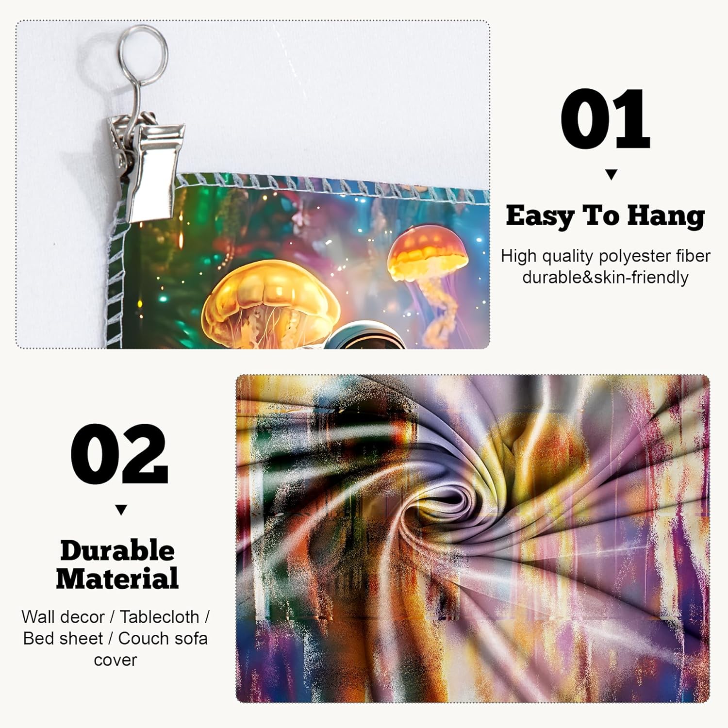 BVBOX Astronaut Blacklight Tapestry 79"x59", UV Reactive Astronaut Jellyfish Underwater World Glow in Dark Tapestries, Black Light Neon Upright Poster Wall Hanging Backdrop Decor for Bedroom Living Room