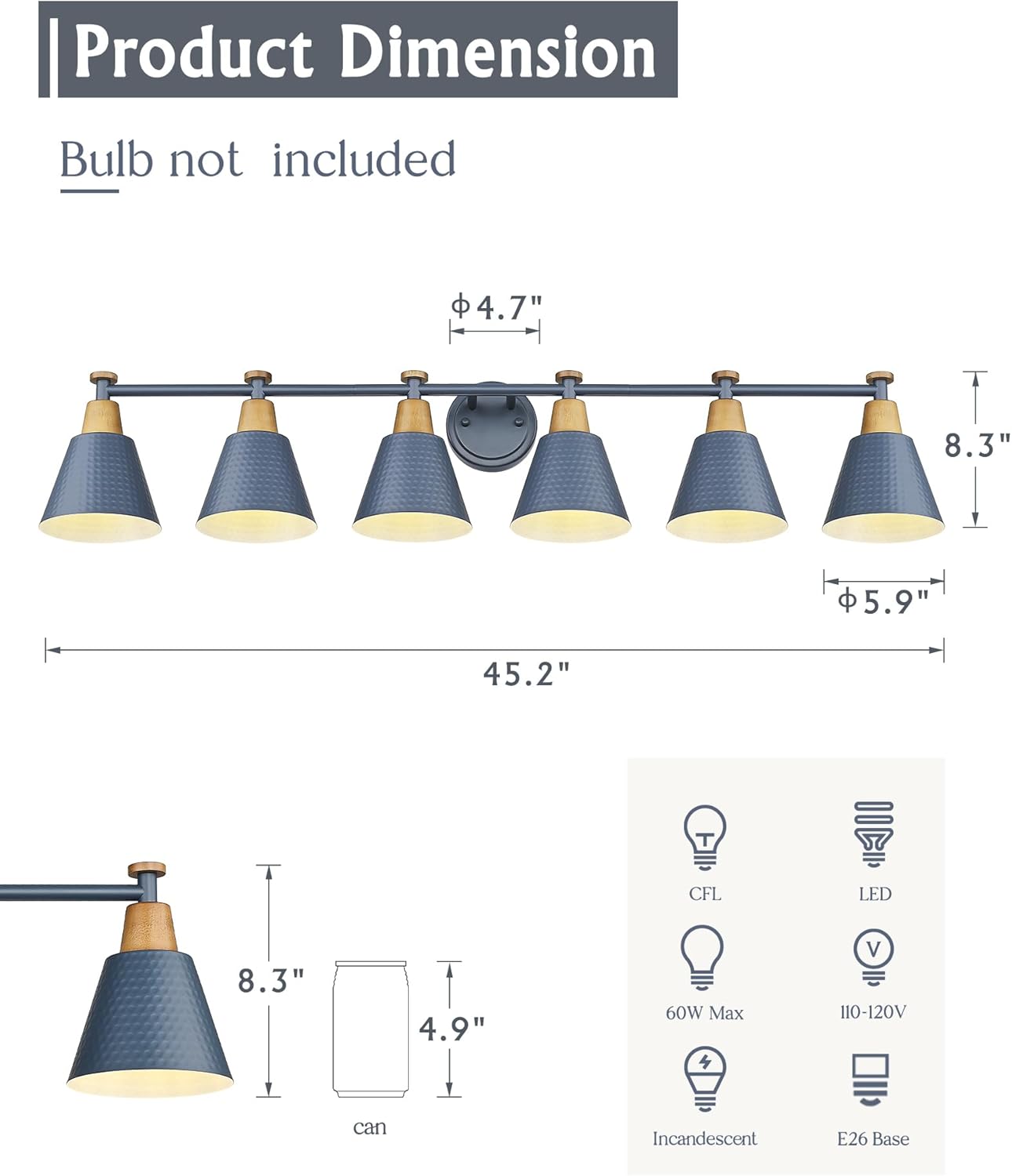 - Versatile Bulb Compatibility β Designed for E26 base bulbs (max 60W each, bulbs not included). This bathroom light fixture supports dimmable functionality when paired with compatible dimmable bulbs and a dimmer switch.