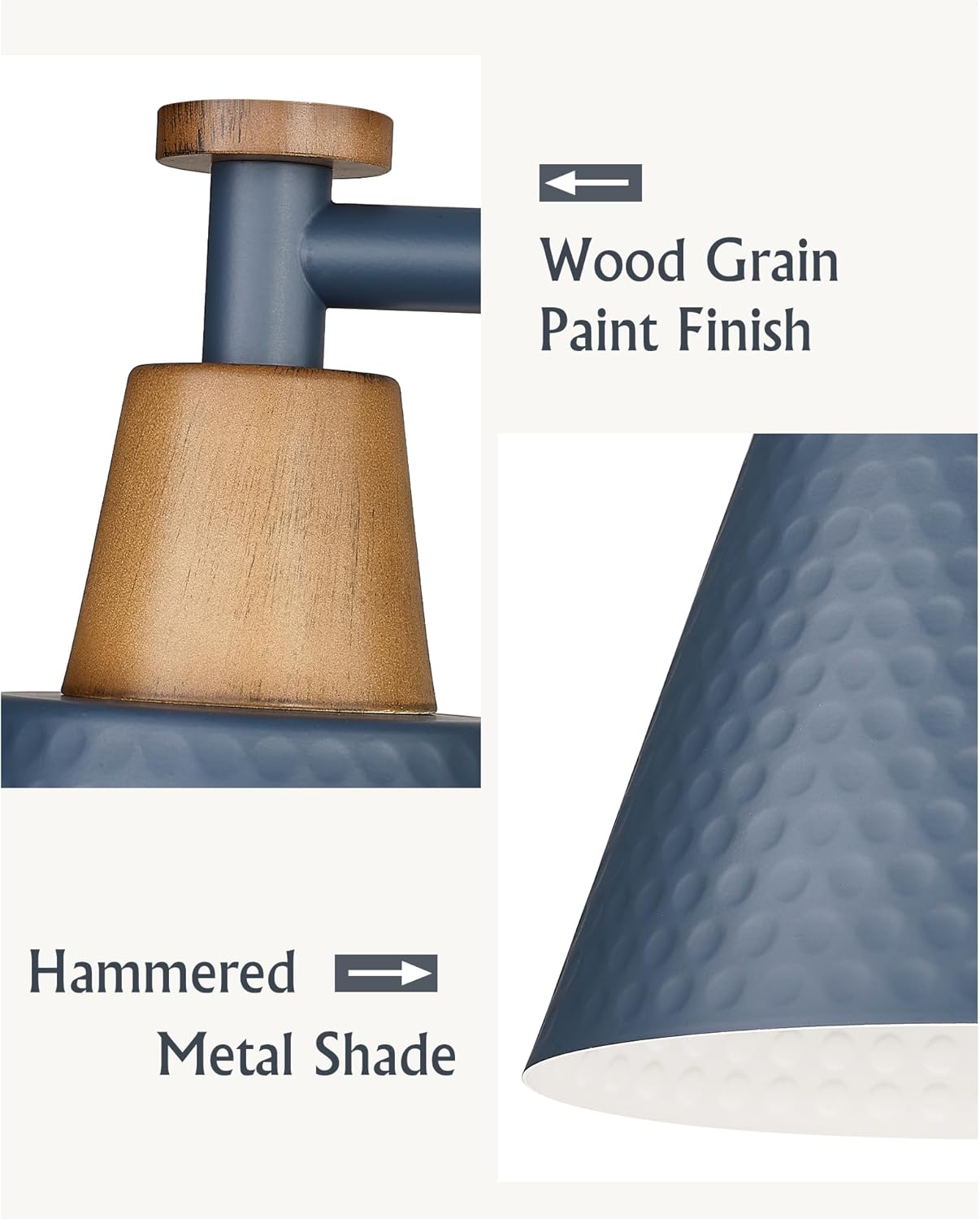 - Classic Blue Elegance β The FEMILA bathroom vanity light features a striking blue finish and a finely crafted hammered metal shade, combining vintage charm with modern sophistication to enhance your space.