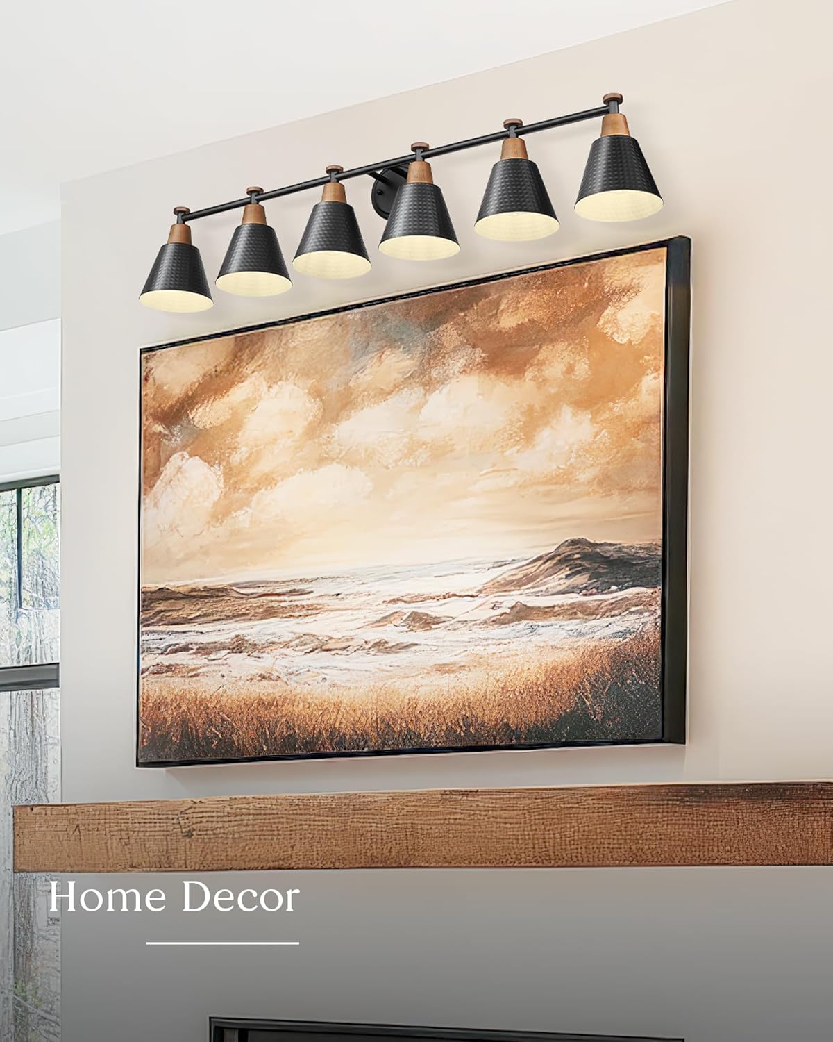 - Refined & Reliable Illumination β ETL listed for safety, this black bathroom light fixture combines farmhouse charm with sleek modern appeal. Featuring a 6 light bathroom vanity light design, it not only adds sophistication but also delivers dependable performance.
