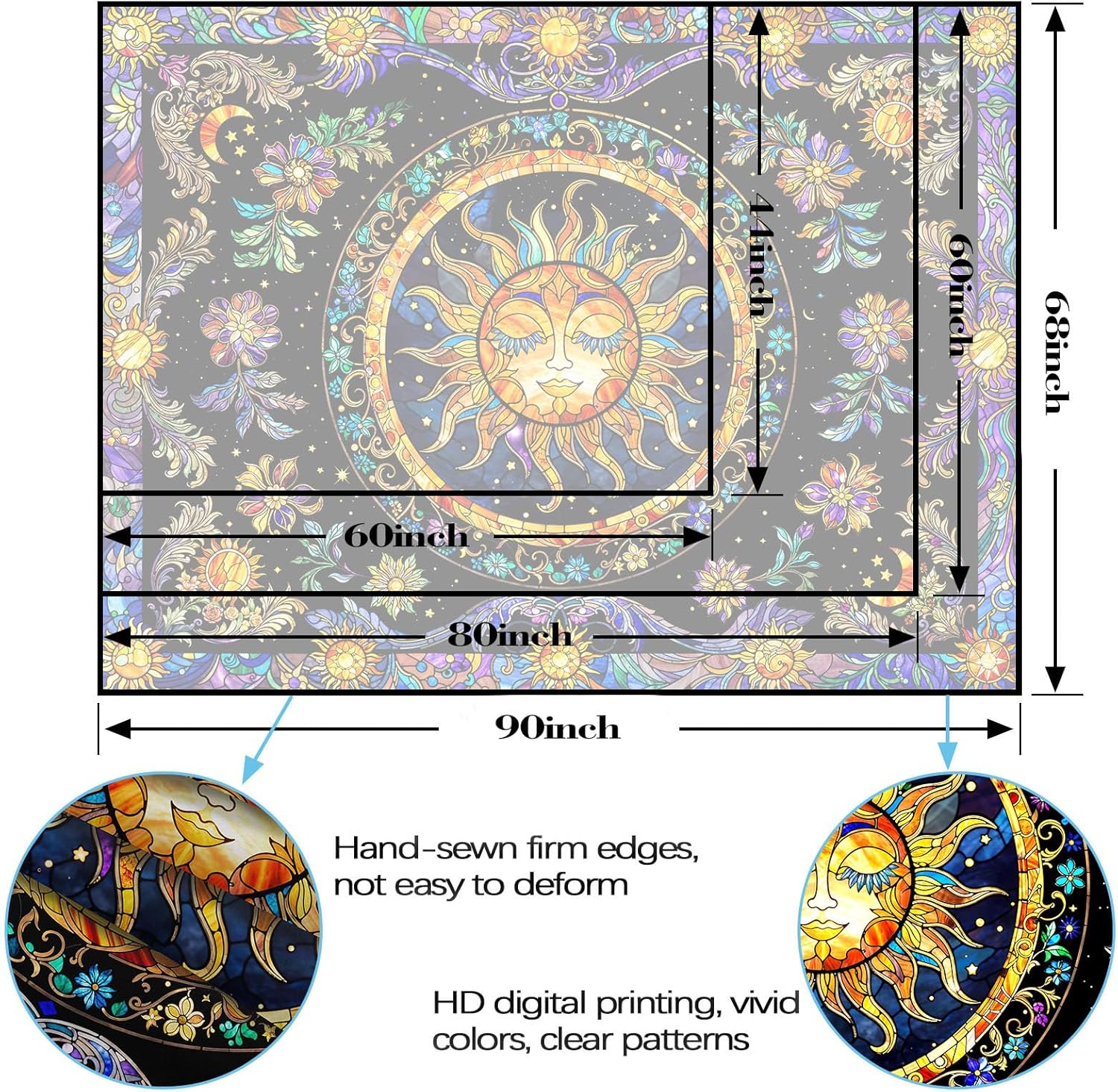 Lunerfex Sun Tapestry Stained Glass Tapestry Wall Decor Tapestries for Bedroom Boho Tapestries Wall Hanging for Bedroom Living Room Glass-Sun-01 70"x90"