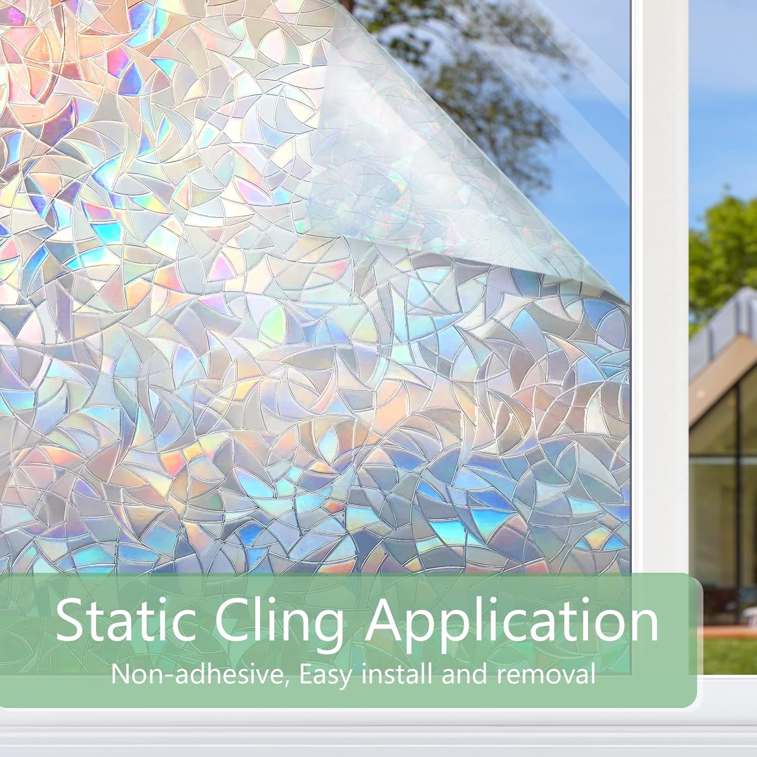 HIDBEA Window Privacy Film Static Clings, Rainbow Window Film, 3D Decals Non-Adhesive Window Vinyl Film for Home Door, 17.3 Inch x 13.1 Feet