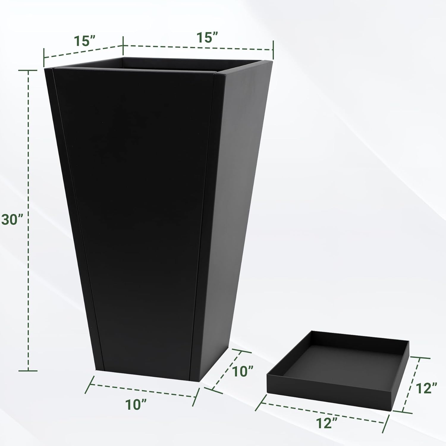 Metal Planter 30" H - 2 Pack, Tall Planters with Removable Insert Shelve & Saucer Trays, Metal Outdoor Planters for Porch, Garden, Patio, Yard (Black)