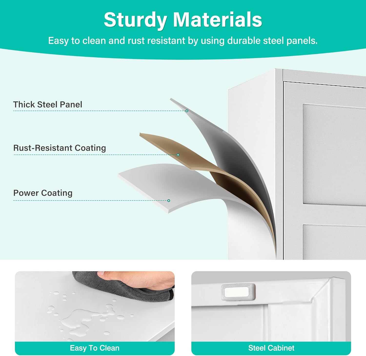 - Sturdy,Durable and Safe: Made of powder-coated steel plate, this cabinet with door and shelf is sturdy,durable and easy to clean.Load capacity is up to 120lbs each shelf. The included anti-tip kit helps secure the pantry cabinets to the wall to give you a safer living space.