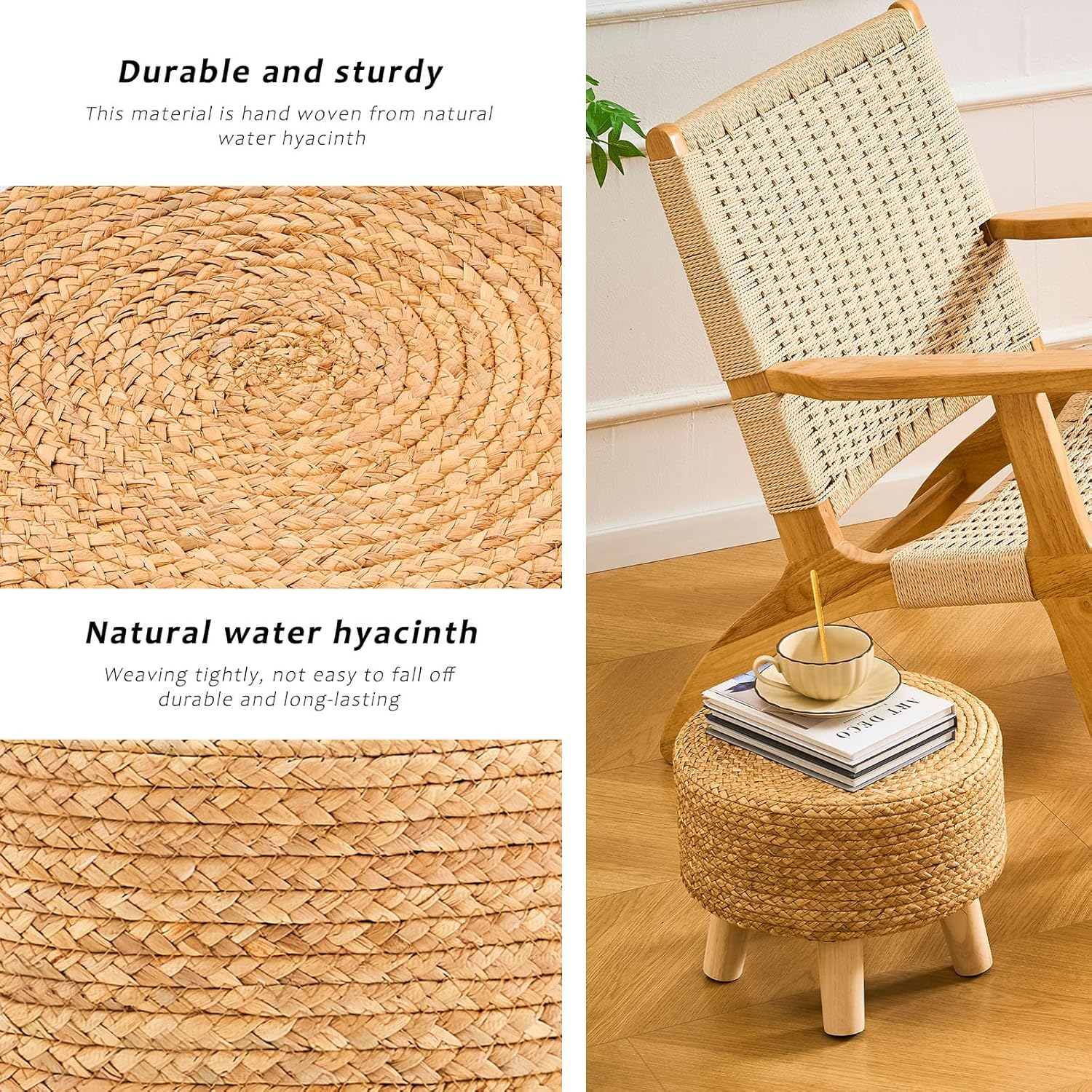 - [Natural Material] Made from 100% natural Water Hyacinth, LGENHOOM footstool is natural, durable, and handwoven for quality craftsmanship.