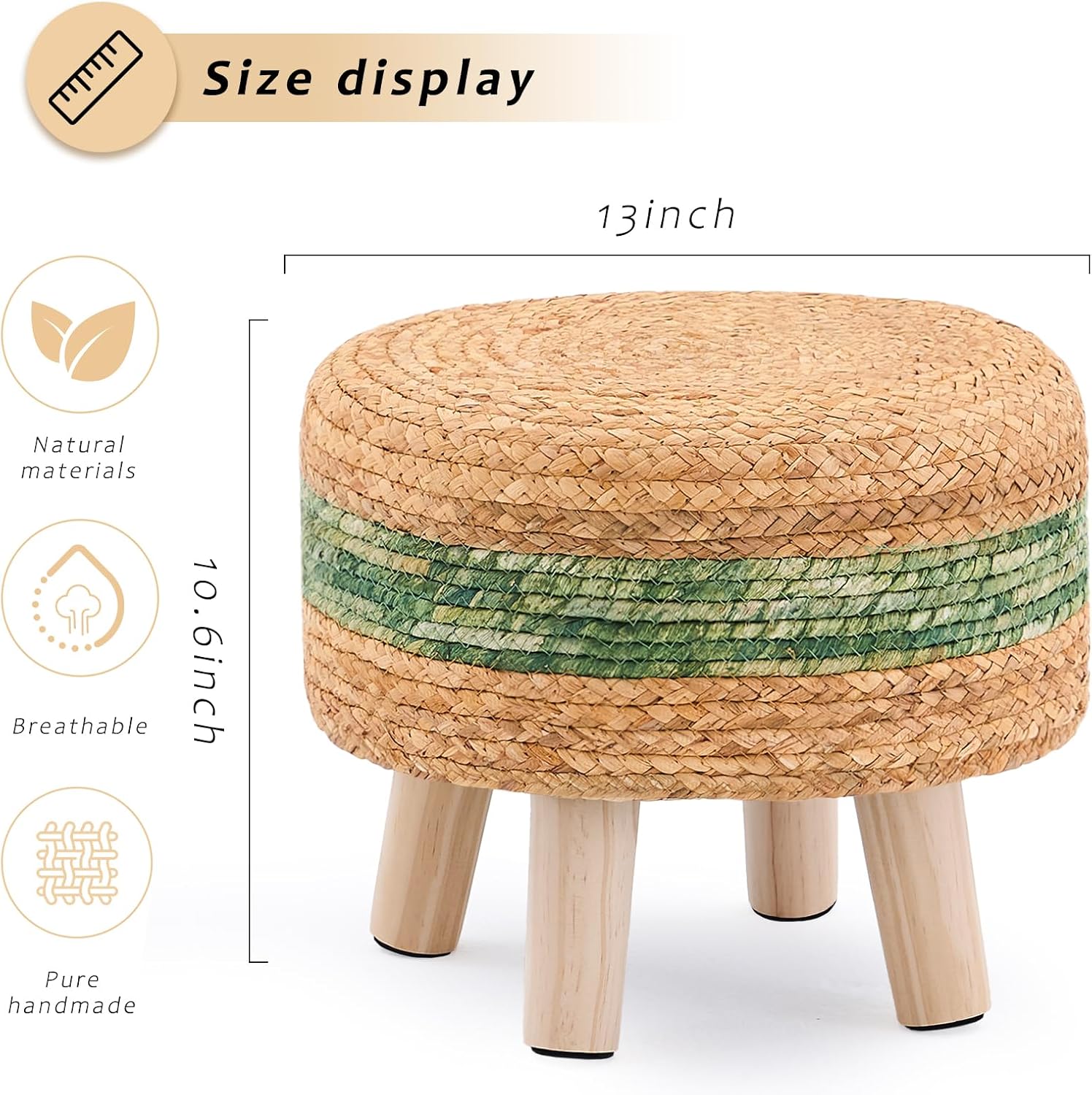 - [Natural Material] Made from 100% natural Water Hyacinth, LGENHOOM footstool is natural, durable, and handwoven for quality craftsmanship.