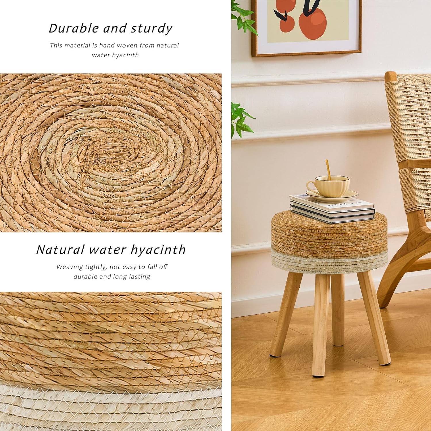 - [Handwoven] Each stool is handwoven by skilled artisans, ensuring unique, high-quality craftsmanship that enhances the beauty of any space.