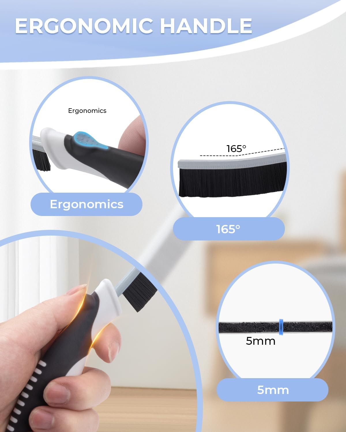 - Compact Size: Portable and easy to transport. The crevice cleaning brush has an ergonomic non-slip handle that provides a comfortable grip and is easy to operate.