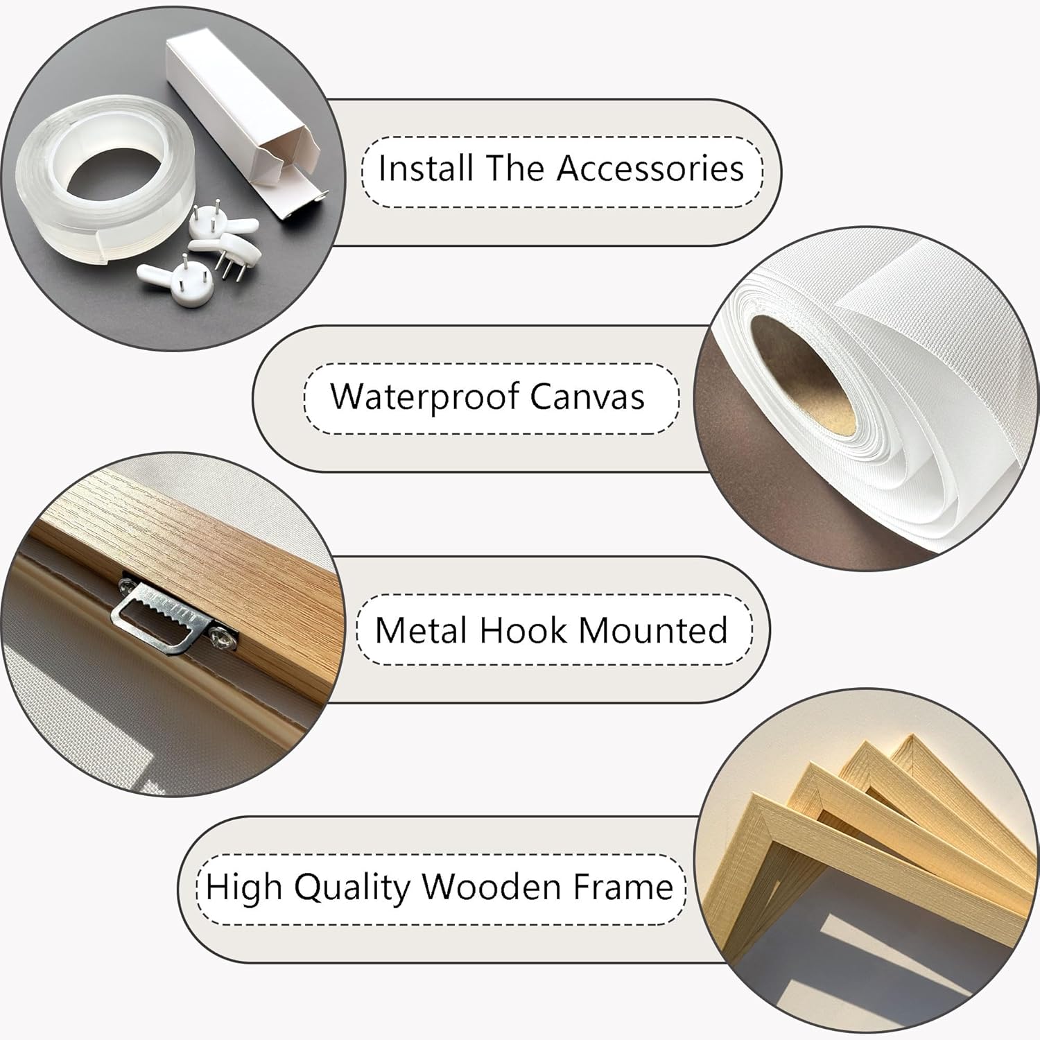 - Wall Art for Living Room:Stretched over a solid wood frame, it comes with pre-installed hooks for quick and effortless hanging.
