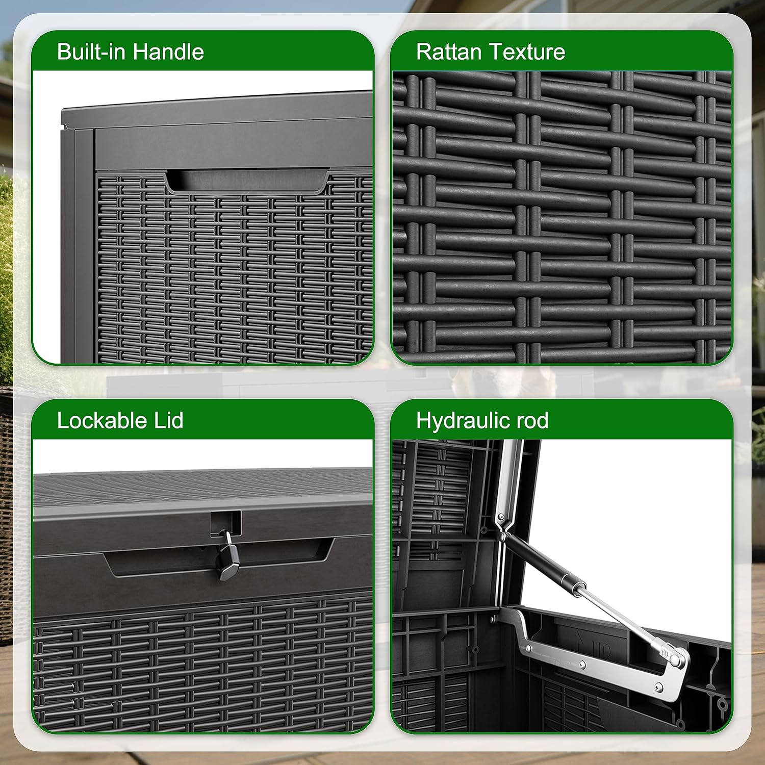 - Sturdy Plastic Construction with UV Resistance:Made from durable resin, this deck box is UV-resistant and built to handle the harshest outdoor conditions, providing years of use without fading or cracking.