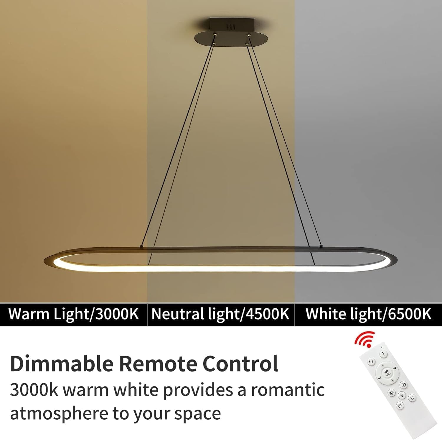 - Dimmable Modern Chandelier :LED chandelier can be dimmed by remote control, from 10% to 100% fully dimmable, and you can remotely control the color temperature of LED chandelier from 3000K-6000K, the light brightness from dark to bright, no eye damage, no flicker. You can choose the light color and brightness you need by remote control, so you can have different light with you in various situations.