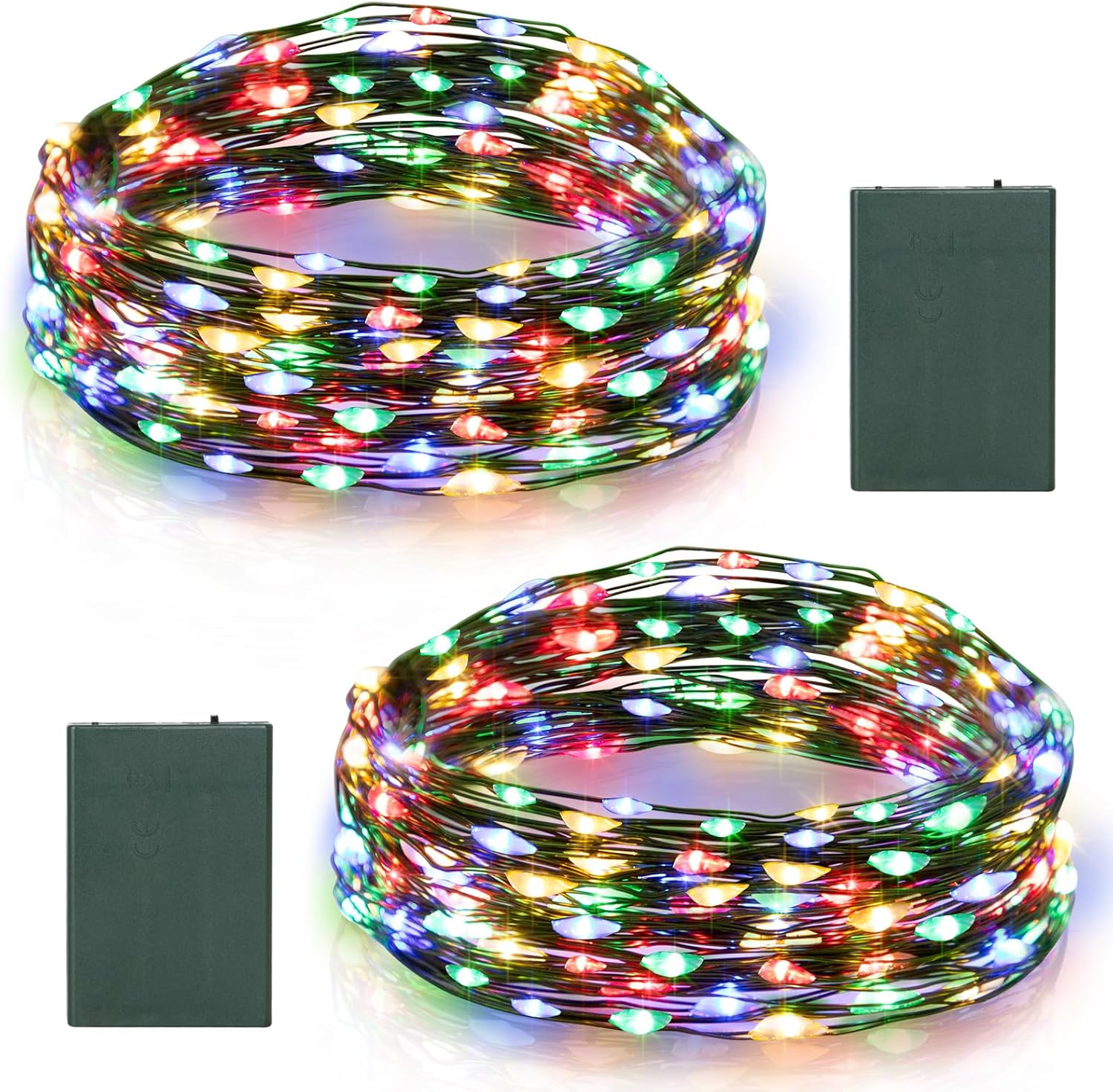 2 Pack Christmas Fairy Lights Battery Operated, 16.4FT 50 LED Dark Green Wire Micro Starry Twinkle Light with Auto Timer Waterproof, Indoor String Lights for Indoor Outdoor Yard Decor (Multicolor)