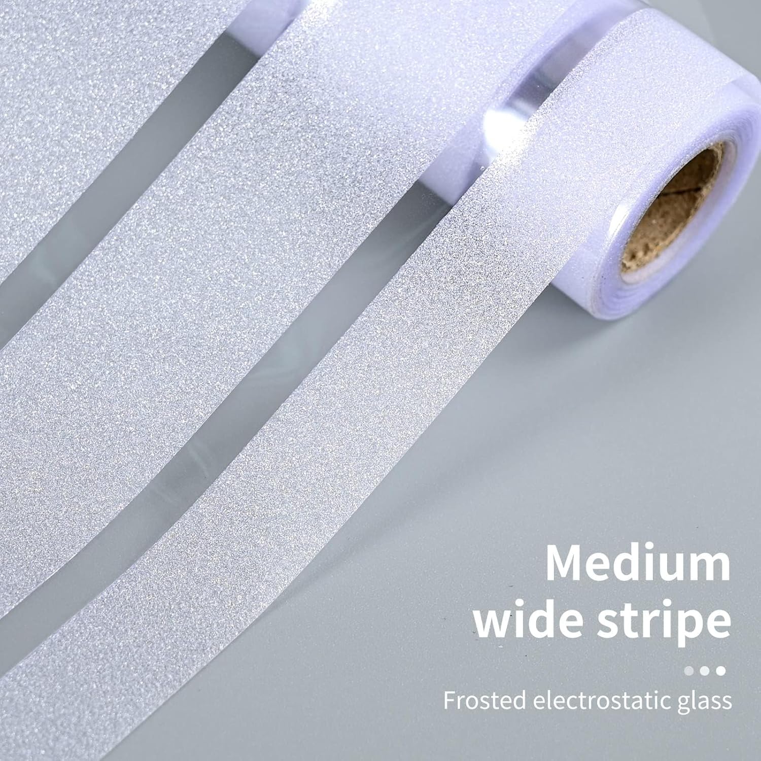 Window Privacy Film with Installation Tools, Stripe Window Film, Static Cling, Anti UV, Heat Control, Ideal for Home Shower Office Glass Door (Stripes Pattern, 29.6X157.4Inch)