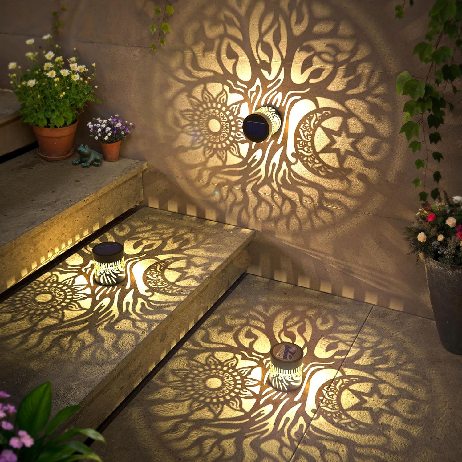 - Good Decoration: 18 lumens of warm yellow light. The large fence solar lights can project a unique and beautiful tree of life pattern. In a dim environment, the solar lights can illuminate a corner of the fence or the wall and create a beautiful and warm atmosphere. They are very suitable as holiday decorations and gifts for relatives and friends.