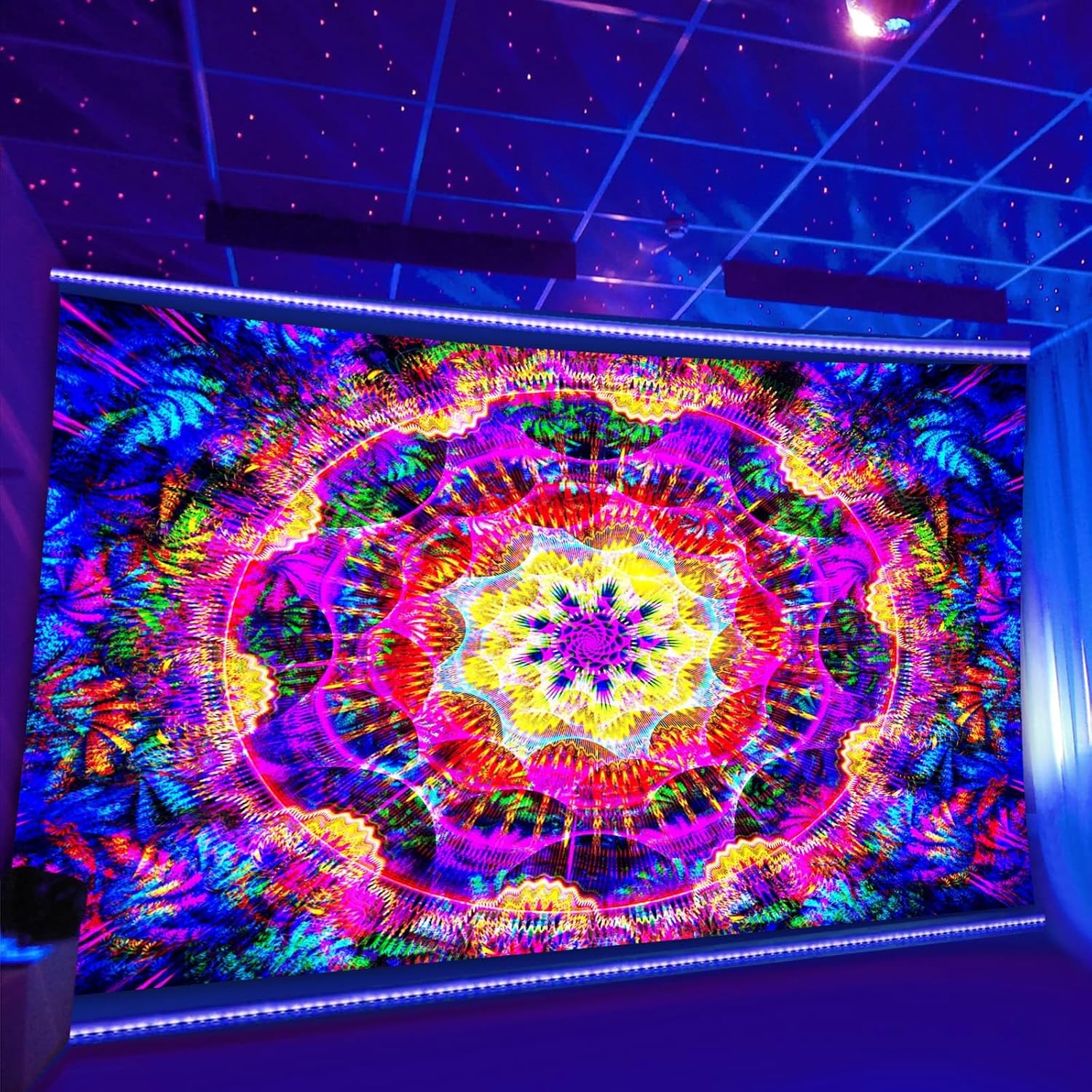 PSYHILAR Blacklight Mandala Tapestry for Bedroom, Psychedelic Black Light Posters for Adults and Teens, Colorful UV Reactive Aesthetic Bohemian Art Wall Hanging Decor (90 x 70 Inches)